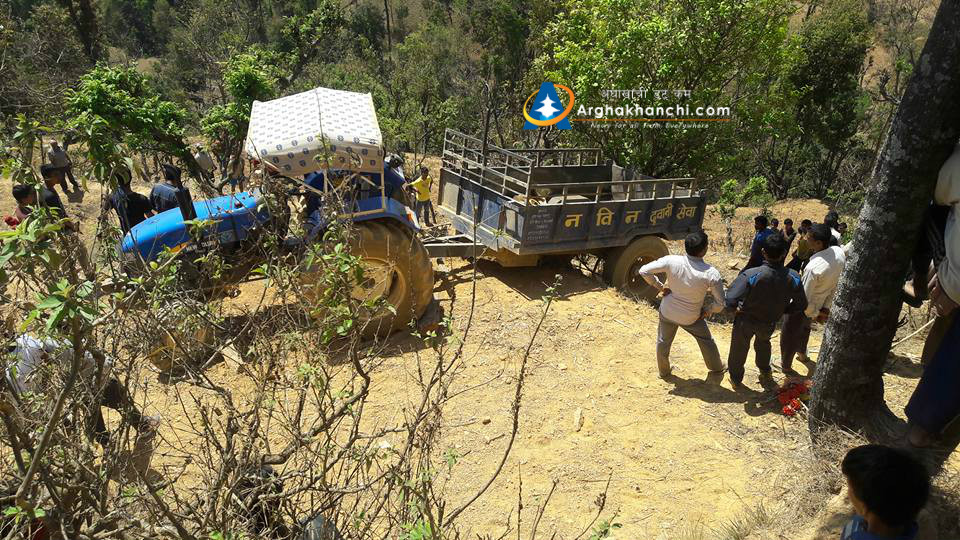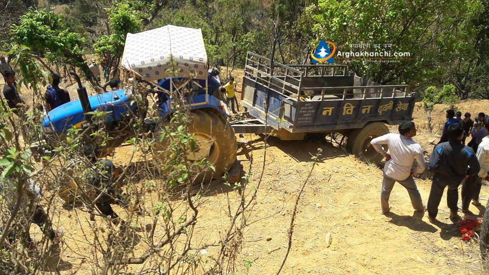 ट्र्याकटर बाटोबाट करिब २०मिटर तल खसी स्थानीयको बारीमा गइ सामान्य अबस्थामा रोकिएको छ । मृतक गाडी धनि हुमलाल पाण्डेको शब पोस्टमार्टम को लागि अर्घाखाँची जिल्ला अस्पताल सन्धिखर्क लागिएको छ। मृतक पाण्डेको दुइ श्रीमती ,दुइ छोरा र दुइ छोरी रहेको अर्घाखाँचीको अर्घातोष प्रहरी चौकी इन्चार्ज बिश्वकर्मा प्रसाद लोहारले जानकारी दिनुभएको छ ।