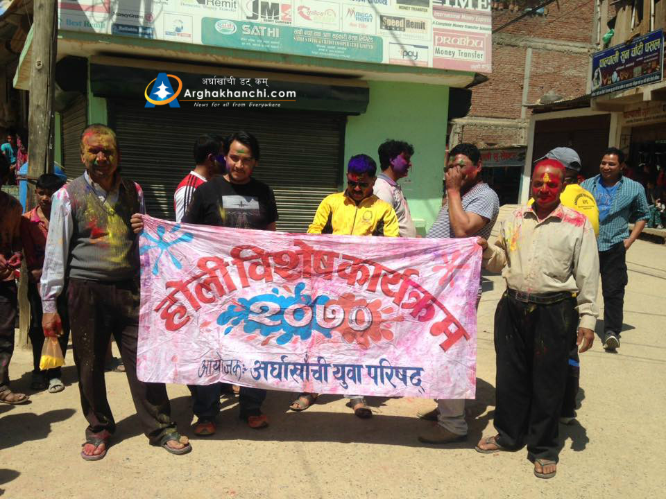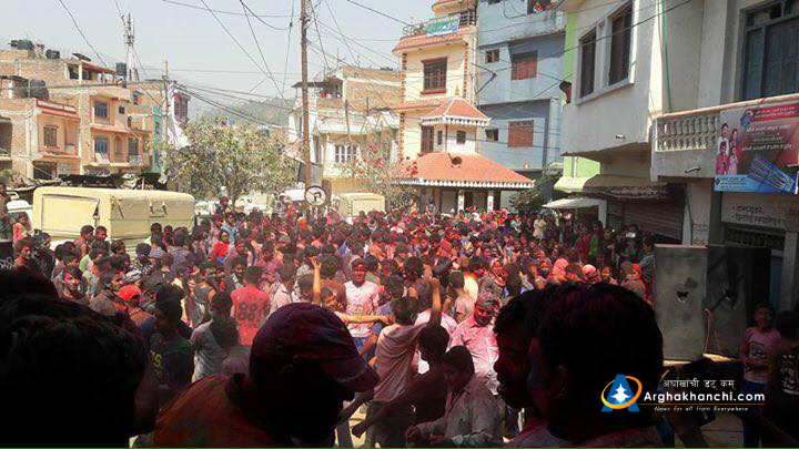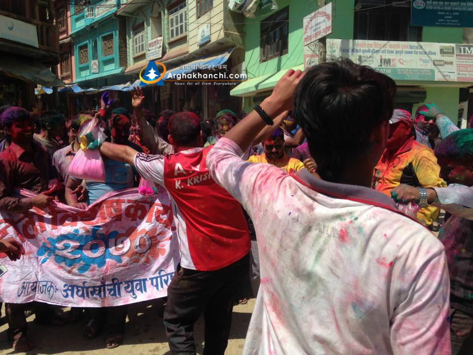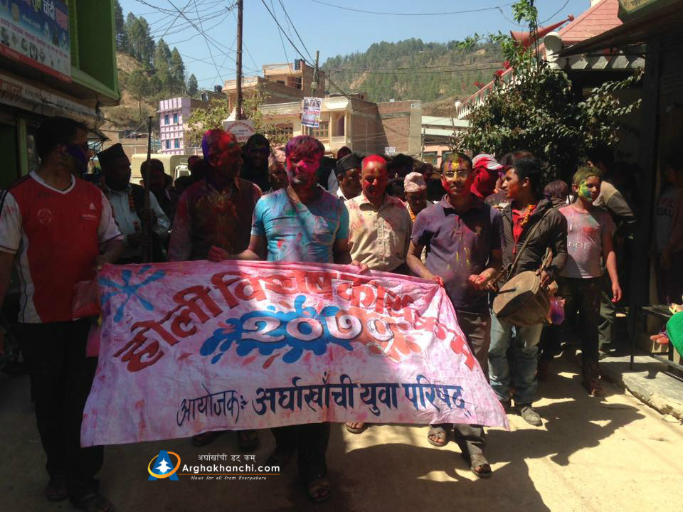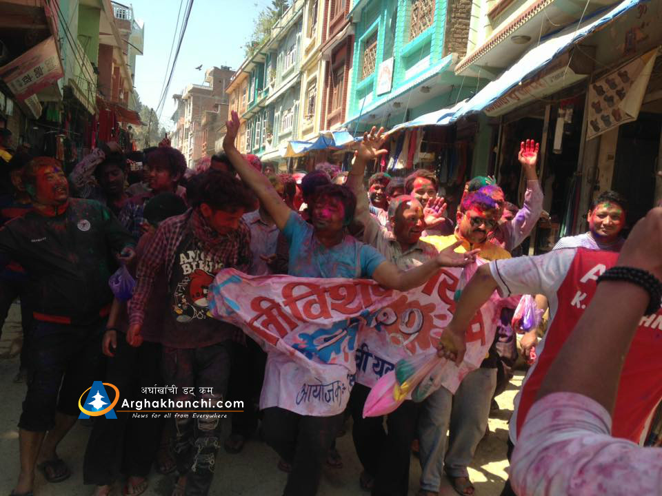 सन्धिखर्क, अर्घाखाँची (अर्घाखाँची डट्कम) । रङैरङको पर्व फागू पूर्णिमा होली अर्घाखाँची जिल्लाभर हर्षोल्लासका साथ मनाईएको छ ।