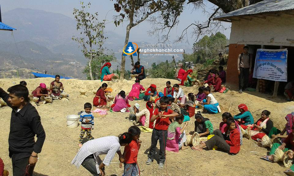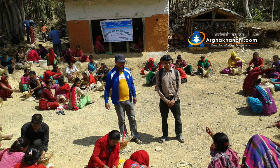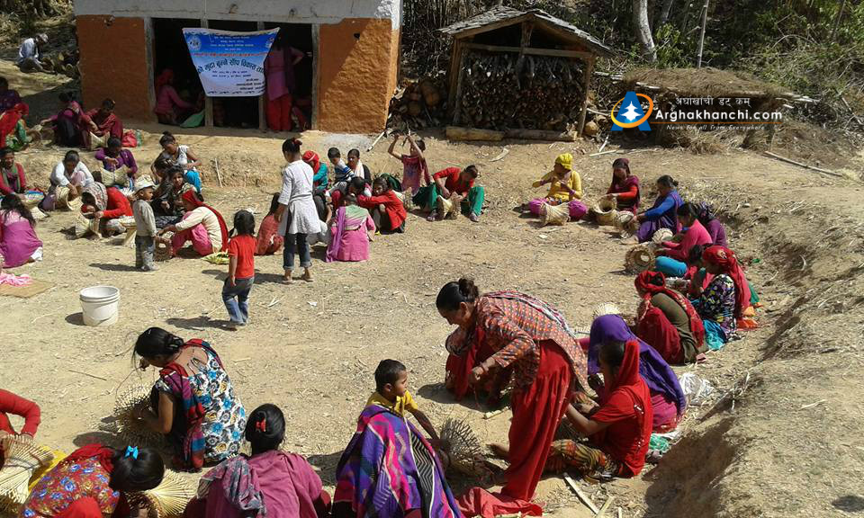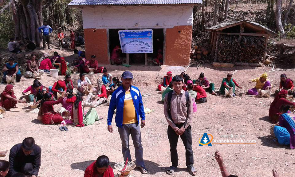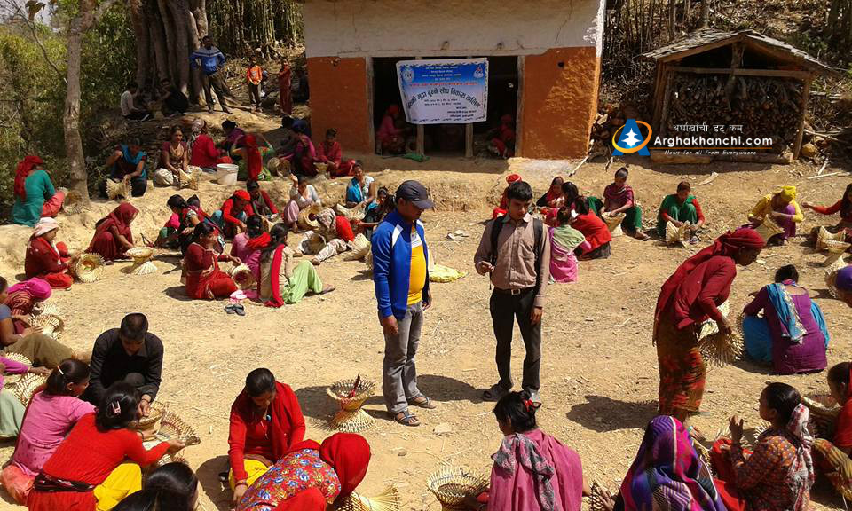 जनबिकास केन्द्र अर्घाखाँचीले संञ्चालन गरेको आय मुलक कमखर्चिलो भुसंरक्षणमा आधारित बाँसका मुडा बनाउने तालिममा सन्धिखर्क वार्ड नं. २ का मात्र महिलाहरुको सहभागितामा रहेको छ ।