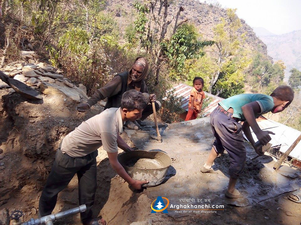 अर्घाको राजुपानीमा खानेपानी टंकी निर्माण कार्य हुँदै (फोटो फिचर)