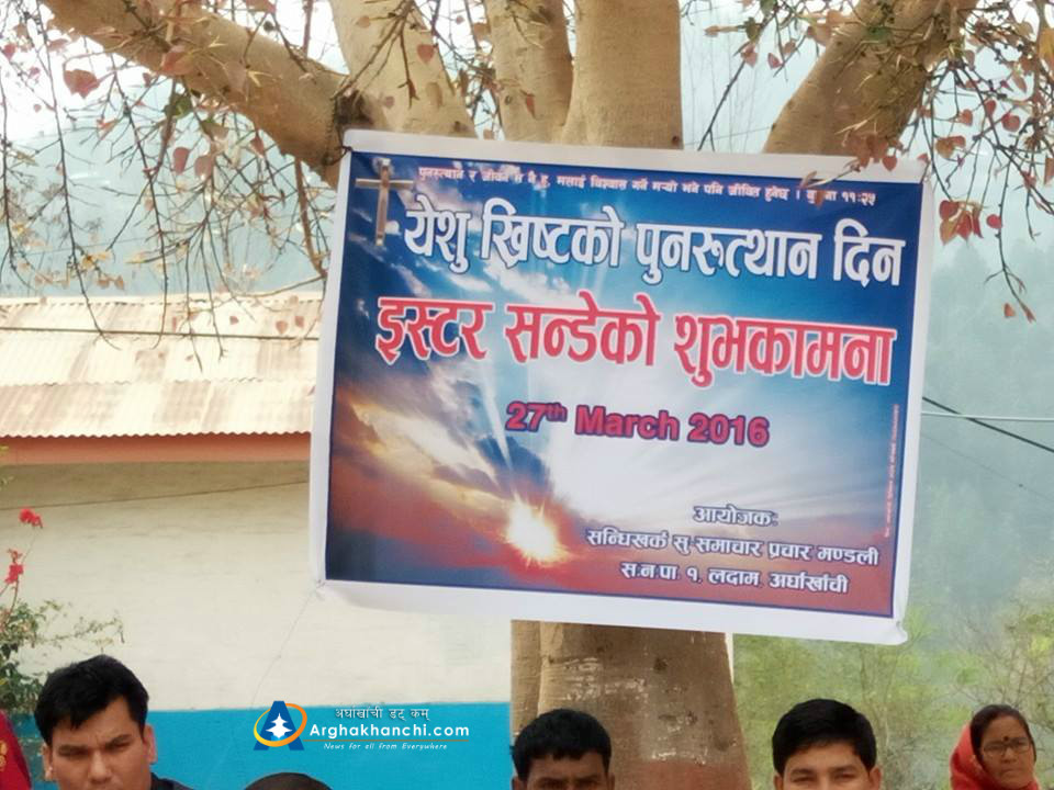 अस्पताल परिसर भित्र नै आयोजना गरिएको उक्त भेलामा दर्जनौ बढी इसाईहरूको उपस्थित रहेको थियो । भेलामा मा येशू मृत्युबाट पुनरुत्थान हुनुभएको लेखिएका व्यानर थियो । उक्त भेलाको आयोजना सन्धिखर्क सु-समाचार प्रचार मण्डली, सन्धिखर्क नगरपालिका – १ लदाम अर्घाखाँचीले गरेको हो । अस्पताल परिसर भित्र नै क्रिश्चियन धर्मावलम्बीहरुको कार्यक्रम हुँदा स्थानियबासीले समेत चिन्ता व्यक्त गरेका छन् ।