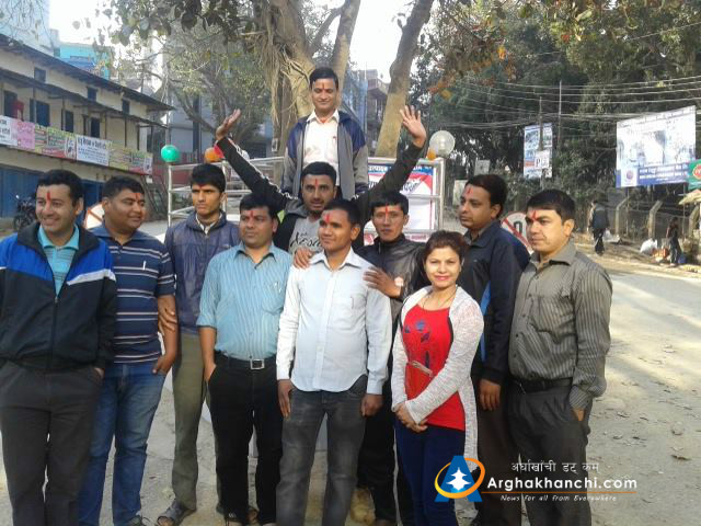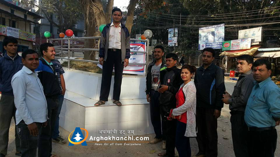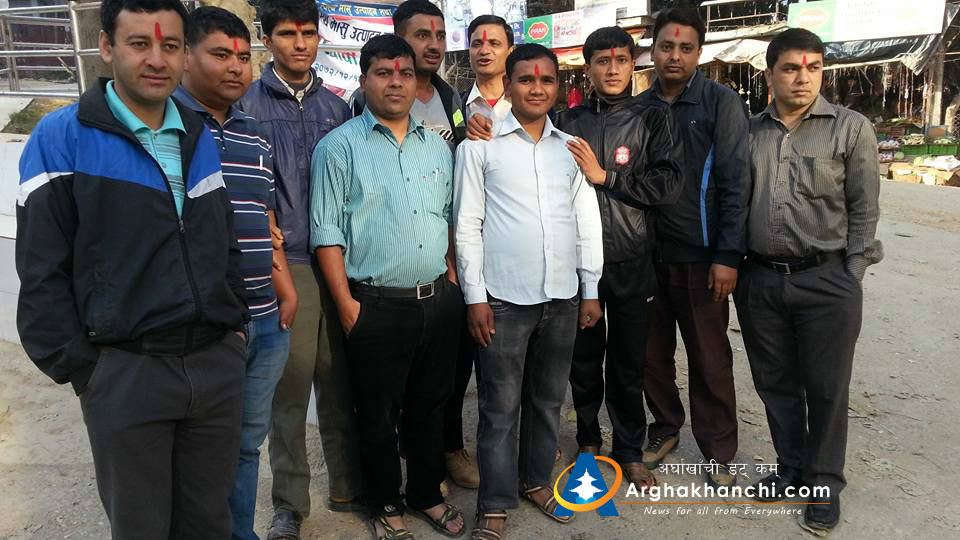 मंगलवार विहान सन्धिखर्कको शान्ती बगैँचा चोकमा जम्मा भएका पत्रकारहरुले एक आपसमा अविर लगाई शुभकामना आदानप्रदान समेत गरेका थिए ।