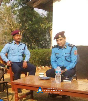 प्रहरी नायब उपरीक्षक नवरत्न पौडेल जिल्ला प्रहरी कार्यालयको प्राङ्गणमा आयोजित भेट्घाट कार्यक्रममा । तस्बिर: सुर्य भुसाल र विनोद गैरे, अर्घाखाँचीडट्कम