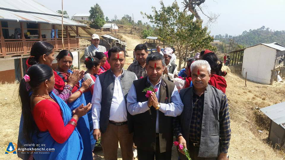 सिद्धारा गाविसमा रहेकाे ठुटीपिपल स्वावलम्वी महिला समुहद्वारा स्वागत गर्दै । तस्बिर: प्रेम आचार्य, अर्घाखाँचीडट्कम