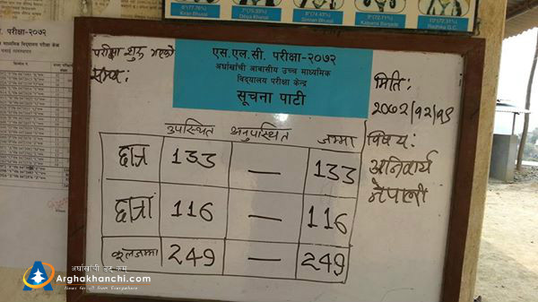 एसएलसीको दोश्रो दिन नेपाली बिषयको परिक्षा दिनको अर्घाखाँची जिल्लाको पाली केन्द्रमा स्वच्छ एवम् मर्यादित किसिमले सम्पन्न भएको छ ।