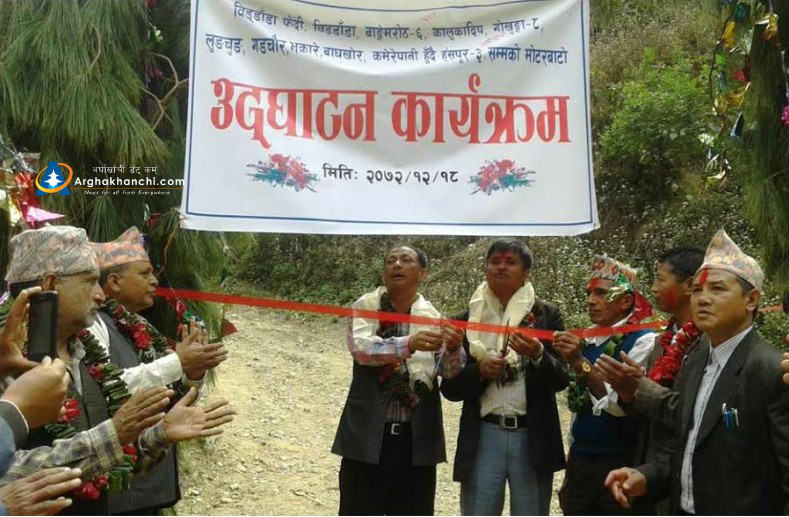 सन्धिखर्क, अर्घाखाँची । अर्घाखाँची जिल्लाको हंसपुर ३ कमेरेपानी बाघखोरदेखि लुंगचुंग, कालुकादीप, बिड्डाँडा हुँदै बिड्डाँडा फेदी र गोखुंगा हुँदै प्यूठानको बांगेमरोठ सौतामारे-विड्डाँडा जोड्ने साढे आठ किलोमिटर सडक निर्माण कार्य पुरा भएको छ । सडक निर्माणको काम पुरा भएपछि विहिवार औपचारिक कार्यक्रम गरी उद्घाटन गरिएको छ ।