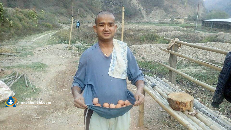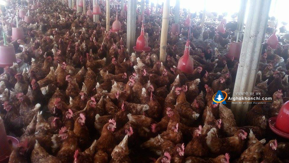 सन्धिखर्क, अर्घाखाँची । श्री शिबालय स्वरोजगार कृषक समूहद्वारा संचालित अर्घाखाँची जिल्लाको सन्धिखर्क नगरपालिका – ४ स्थित तिनथुप्रे खुकुरे फाँटमा स्थापित शिबालय पोल्ट्री फर्ममा अहिले ४,००० कुखुरा छन भने दैनिक ३८०० अण्डा उत्पादन हुने गरेको छ ।