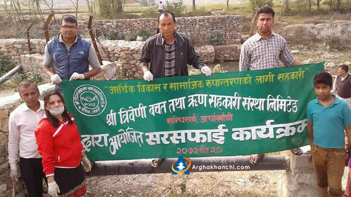 सन्धिखर्क, अर्घाखाँची । राष्ट्रिय सहकारी विसको अवसर पारी आर्थिक विकास र सामाजीक रुपान्तरतरको लागि सहकारी भन्ने मुल नाराका साथ लागि त्रिबेणी बचत तथा ऋण सहकारी संस्था लि. सन्धिखर्क, अर्घाखाँचीको आयोजनामा बृहत सरसफाई कार्यक्रम सम्पन्न भएको छ ।