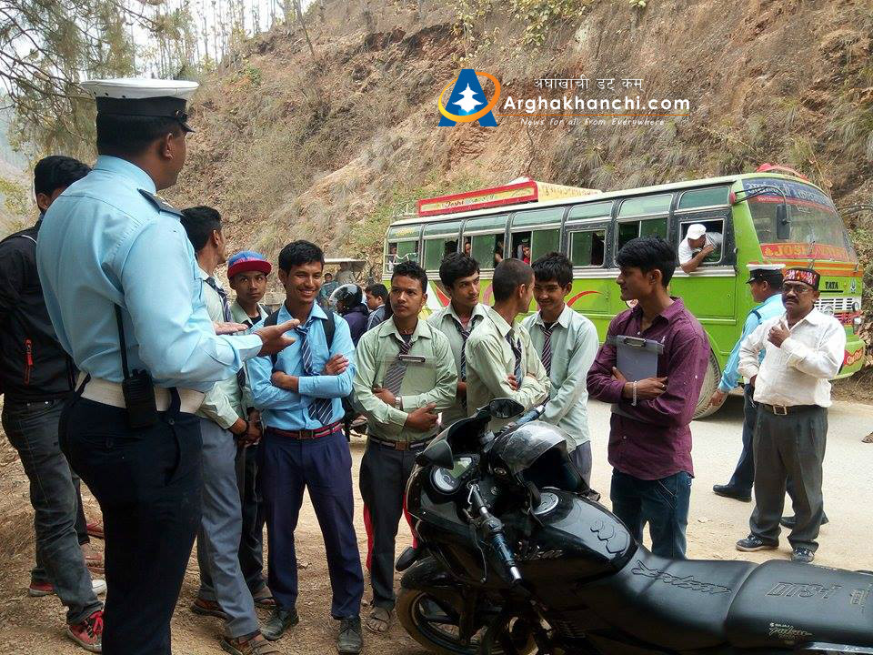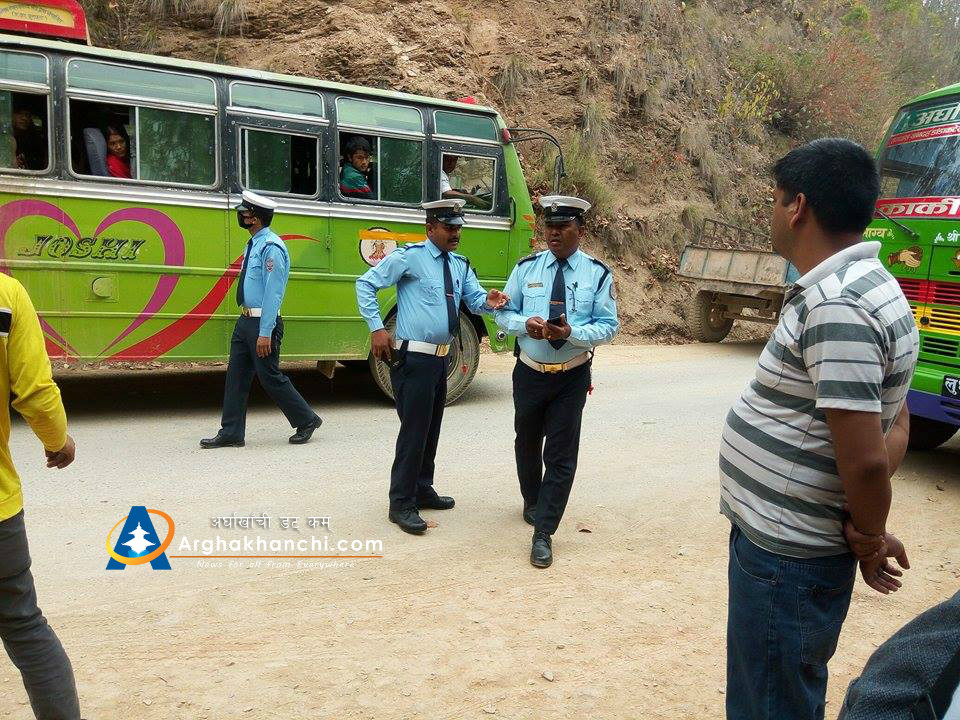 ट्राफिक नियमको पालना नगर्दा दुर्घटना वढने भन्दै ट्राफिक नियमको पालना गरेर मात्र सवारी चलाउन प्रहरीले चालकलाई आग्रह गरेको छ । ट्राफिक प्रहरी कार्यालय अर्घाखाँचीका प्रमुख रेशम रानाभाटले गाडीमा सवार यात्रु र चालकलाई प्रशिक्षण दिएका थिए । उनले चालकले मुस्कान सहितको सेवा दिन नसकेको भन्दै यात्रुलाई नम्र व्यवहार गर्नुपर्ने बताए ।