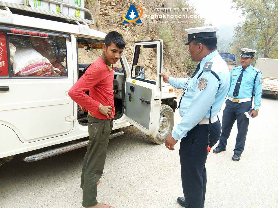 प्रहरीले गोरसिङे- सन्धिखर्क सडक खण्डमा पर्ने विभिन्न ठाउँमा गाडी रोक्दै आबश्यक कागजाच चेकिङको क्रममा चेतना मूलक प्रशिक्षण दिएको हो ।