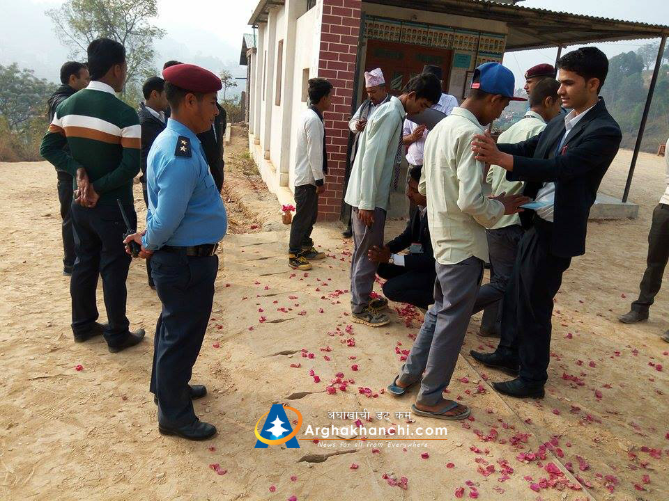 सन्धिखर्क, अर्घाखाँची । अर्घाखाँची जिल्लाका १७ वटा केन्द्रमा यस वर्षको प्रवेशिका (एसएलसी) परीक्षाको मंगलवारको परीक्षा सामान्यतया शान्तिपुर्ण र मर्यादित तरिकाले सम्पन्न भएको छ।