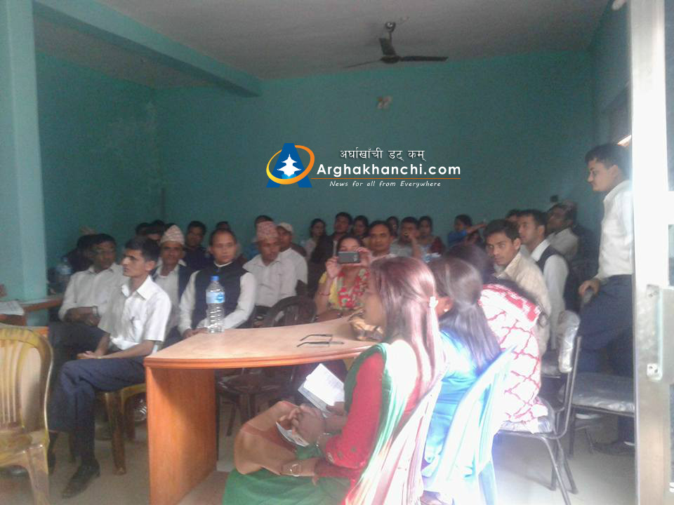 नेपाल निजामती कर्मचारी युनियन सघ ले सन्धिखर्कमा आयोजना गरेको अन्तरक्रिया कार्यक्रम मा नेपाली काङ्ग्रेस का प्रतिनिधि कृस्न खनाल कर्मचारी युनियन का केन्द्रीय सदस्य हरु कृस्न तिमिल्सिना गणेस भन्डारि केन्द्रीय सदस्य शान्ता अर्याल शिक्षक सघ का अध्यक्ष यादब प्रसाद घिमिरे नगर सभापति बिनोद आचार्य, नेपाल प्रेस युनियनका अध्यक्ष सुर्य प्रसाद भुसाल नेपाल तरुणदलका अध्यक्ष पिताम्बर खनार्ल लगायतले मन्तब्य राख्ननु भएको थियोे ।
