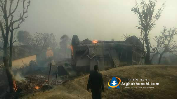 सिमलपानी, अर्घाखाँची (अर्घाखाँची डट्कम) । अर्घाखाँची जिल्लाको सिमलपानी-८ जौवारीमा आगलागीबाट ७ घर र ८ गोठ जलेर नष्ट भएको छन् । आईताबार दिउसोबाट लागेको अहिले नियन्त्ररणमा आएको छ ।