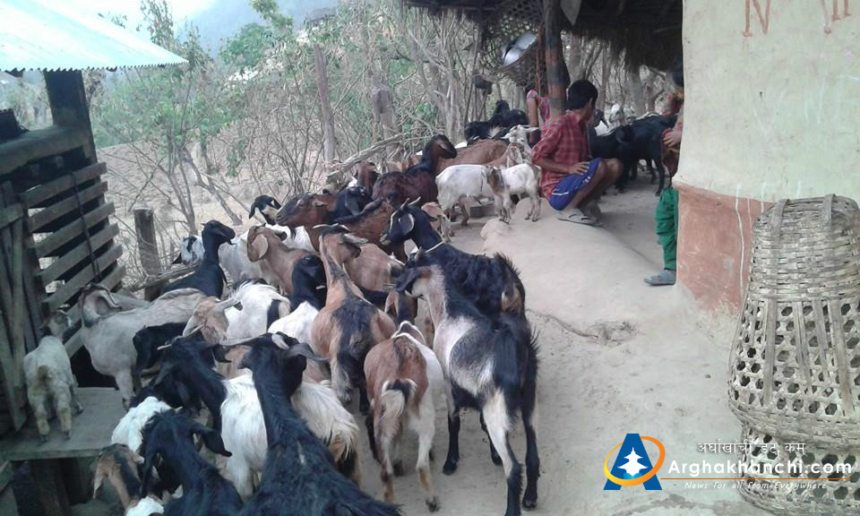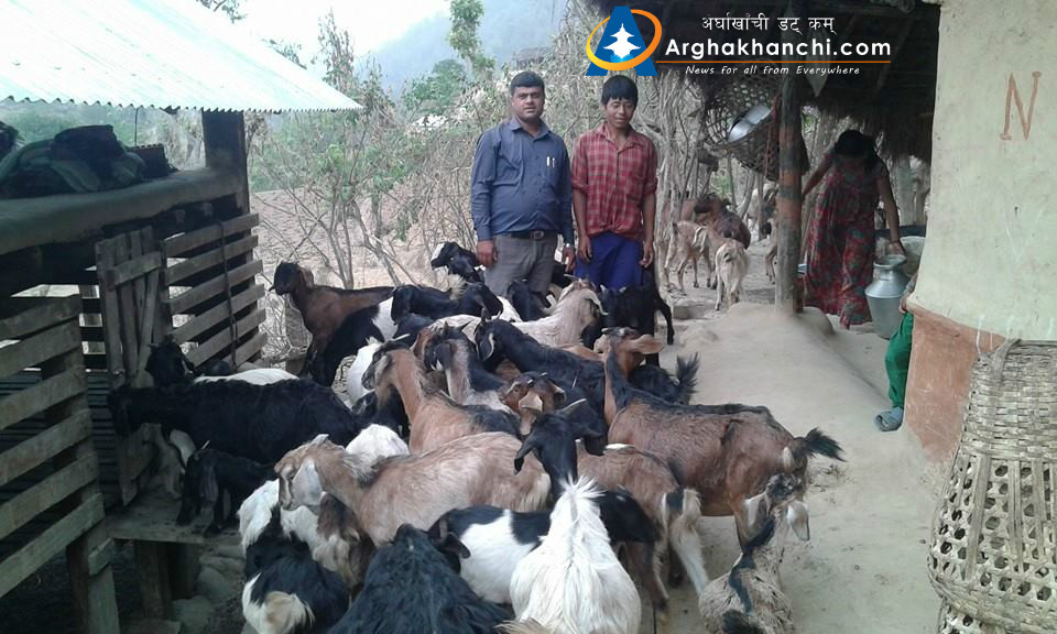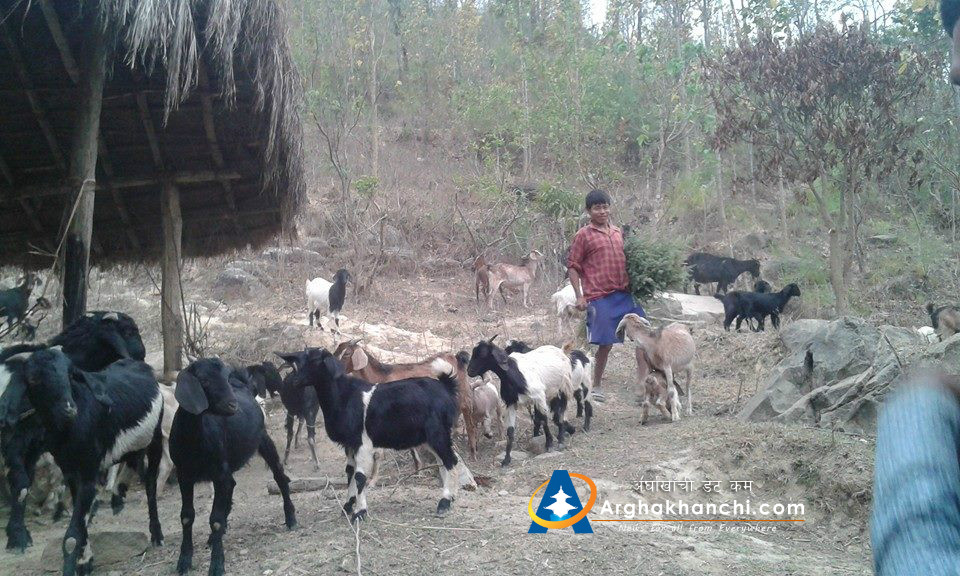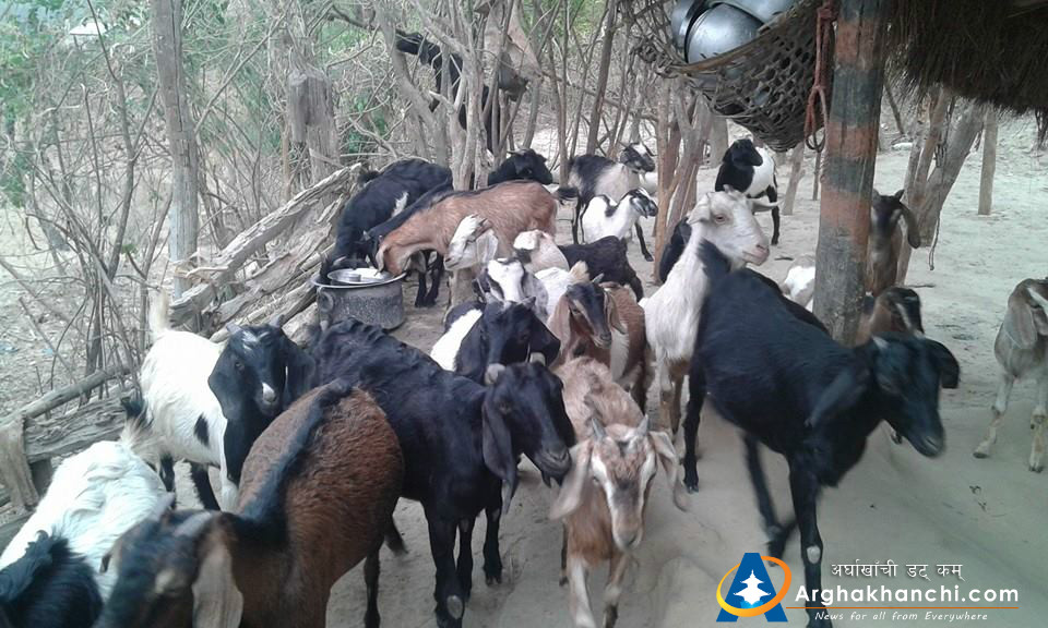 अर्घाखाँची (अर्घाखाँचीडट्कम) । अर्घाखाँची जिल्लाको सिद्धाराका एक कृषकले बाख्रा पालनबाट मनग्य आम्दानी गर्दै आएका छन् ।