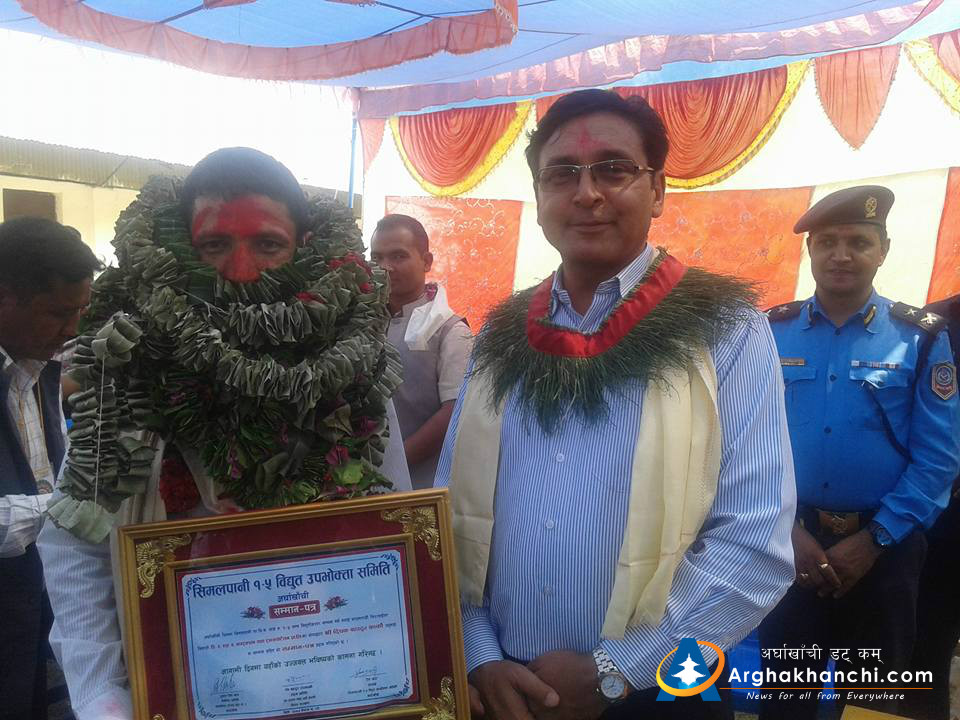 कार्यक्रम मा डि एस ए कन्टक्सनका प्रमुख दिपक बहादुर कार्कि लाई बिधुत प्रसारण लाईन सम्पन्न गरेको भन्दै उपप्रधानमन्त्री टोप बहादुर रायमाझी ले दोषल्ला अोढाई सम्मान गर्नु भएको थियो ।