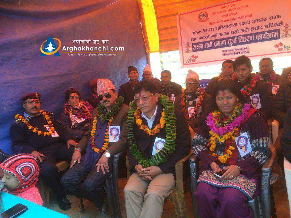 कार्यक्रम मा एमाले युबा नेता सासद डाक्टर दुमनसिह थापाले कृषि क्रान्ति बिना मुलुकमा अार्थिक क्रान्ति हुन नस्सक्ने बताउनु भयो कार्यक्रम मा नेकपा एमाले का केन्द्रीय सदस्य नजिर मिया निमित्त प्रमुख जिल्ला अधिकारी चिरञ्जीवी घिमिरे स्थानीय बिकास अधिकारी लक्ष्मि पान्डे गौतम नेपाल बिधुत प्राधिकरण का क्षेत्रीय डाईरेक्टर कासेन्द्द यादब बिधुत प्राधिकरण अर्घाखाँची का प्रमुख पबन कुमार शाहा प्रहरि नायब उपरीक्षक नबरत्न पौडेल एनेकपा मनअोबादि का अर्घाखाँची अध्यक्ष चन्द्द बहादुर खड्का नेपाली काङ्ग्रेस का सगठन बिभाबका सदस्य दामोदर न्यौपाने ऐनेकपा माअोबादिका टिका रेश्मि नेकपा एमाले का लोकनाथ खनाल लगाएतले मन्तब्य राख्नु भएको थियोे।
