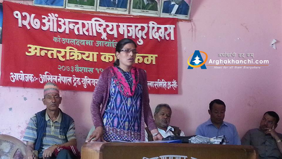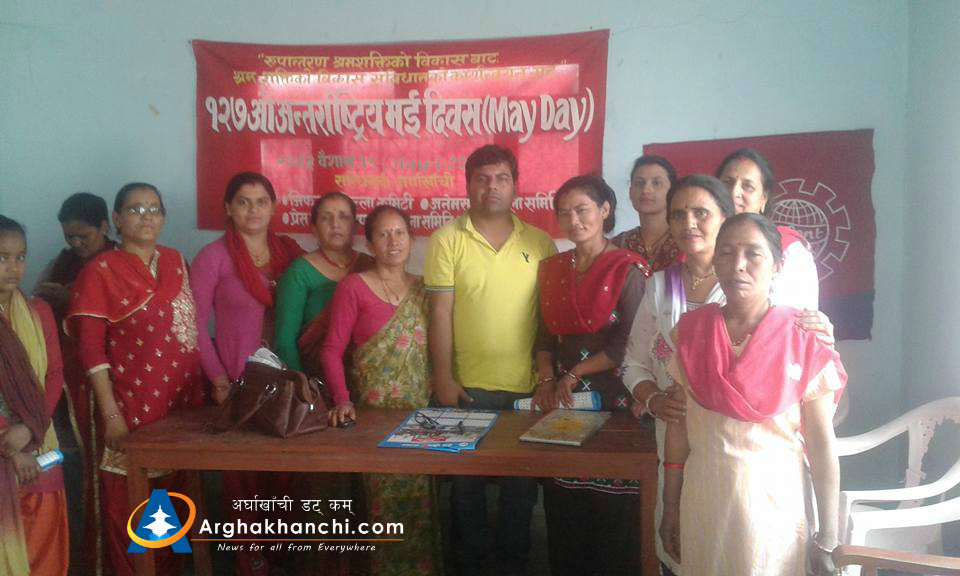 यस्तै आज १२७ औ अन्तराष्ट्रिय मजदुर दिबसको अबसरमा एमाले निकट अखिल नेपाल महिला संघ अर्घाखाँची एक कार्यक्रमको आयोजना गरेको थियो ।