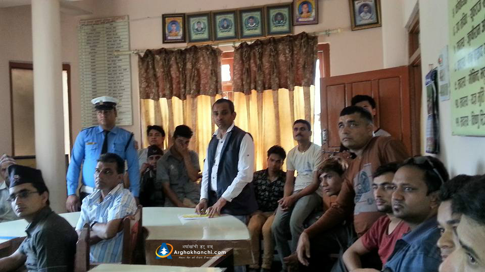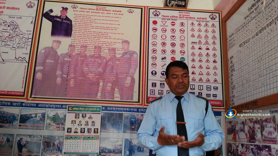सन्धिखर्क, अर्घाखाँची । जिल्लामा सवारी दुर्घटनालाई न्यूनीकरण गर्न सचेतना अभियानलाई तिब्रता दिएको ट्राफिक प्रहरी कार्यलय अर्घाखाँचीले आज देउराली यातायात व्याबसायी समिति अर्घाखाँची अन्र्तगतका सवारी चालक, सह-चालक र सवारीधनी बीच ट्राफिक नियम र नियम उलंघन गरे बापत लाग्ने परिमार्जित जरिवानाको बारेमा जानकारी गराएको छ ।