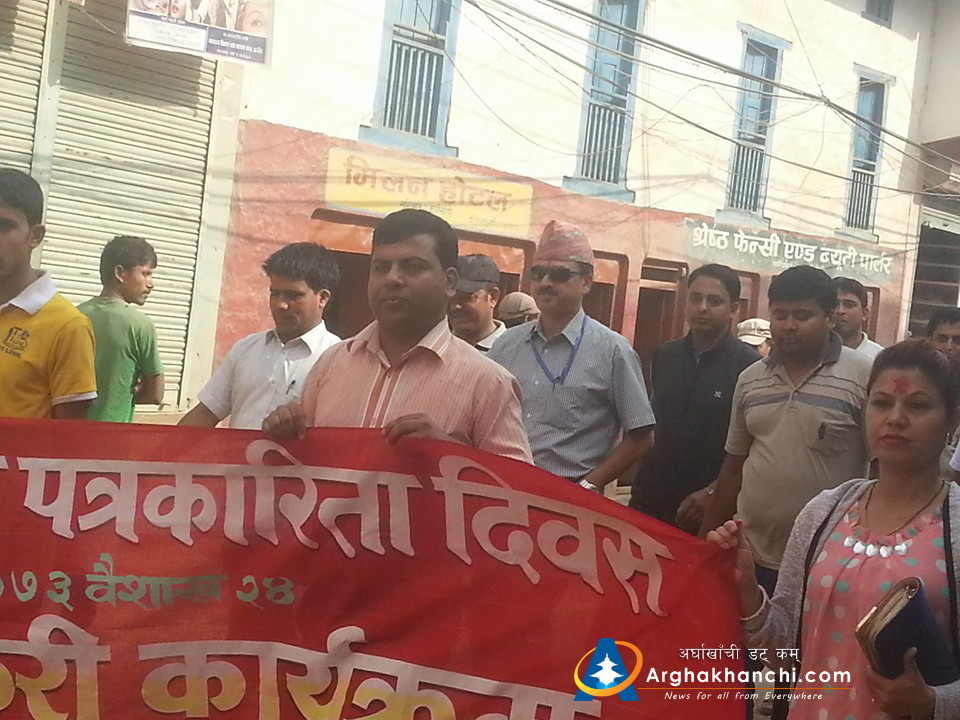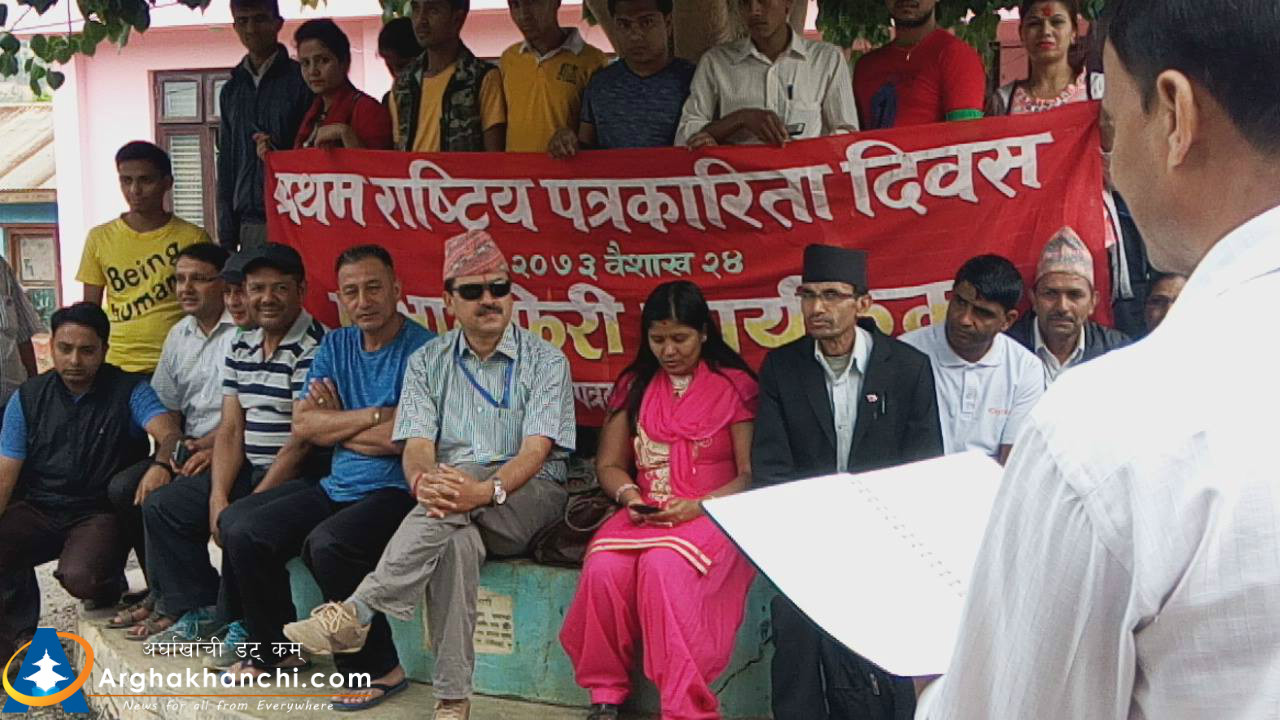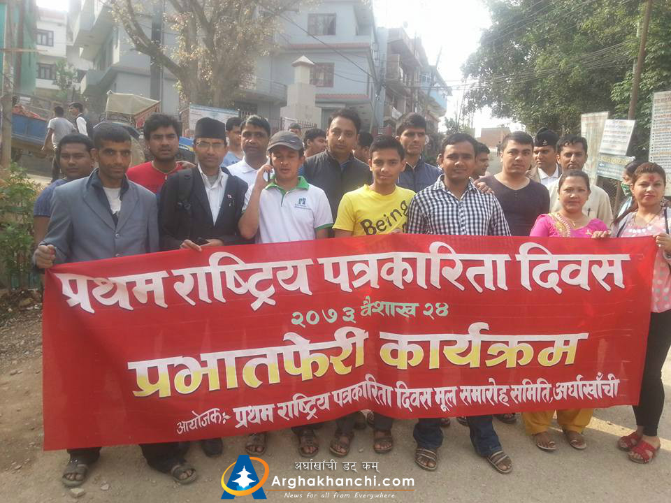सन्धिखर्क, अर्घाखाँची ( अर्घाखाँची डट्कम ) । अर्घाखाँची जिल्लाको सन्धिखर्कमा प्रथम पत्रकार दिवसको उपलक्ष्यमा नेपाल पत्रकार महासंघ अर्घाखाँची शाखाले प्रभातफेरी कार्यक्रम सम्पन्न भएको छ ।