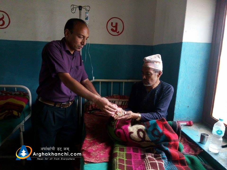 पत्रकार दिवसको अवसरमा अर्घाखाँची जिल्ला अस्पतालमा भर्ना भएका बिरामीलाई फललफुल बितरण समेत गरिएको थियो ।