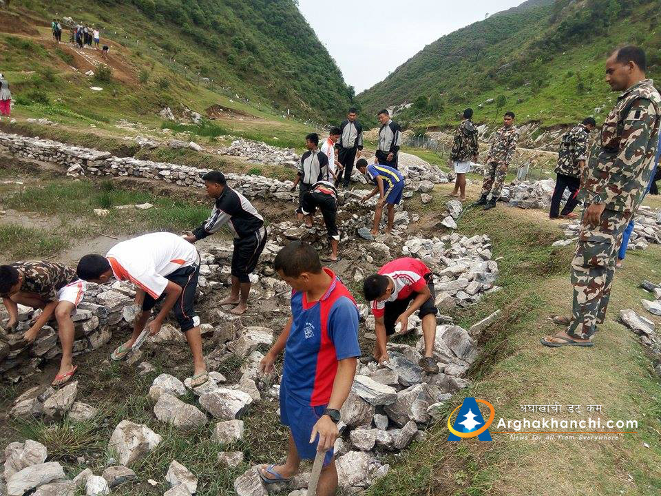 पछिल्लो समयमा अर्घाखाँचीको वाङ्ला स्थित मियालपोखरीमा बन्न लागेका पोखरी लगायत विभिन्न सामुदायिक कार्यमा नेपाली सेना खटिएका छन् ।