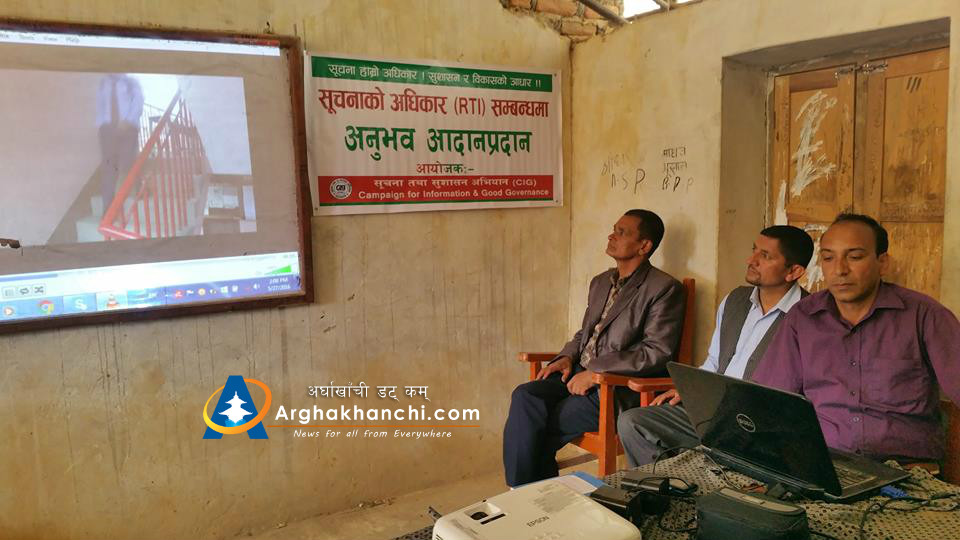 सिआईजीका अध्यक्ष तथा अभियानकर्ता मुक्ति नाथ भुसालले आरटीआईको महत्व र ब्यवहारीक प्रयोग सम्वन्धमा भिजुअल मार्फत जानकारी गराएका थिए ।