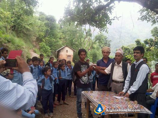 धातिवाङ्ग, अर्घाखाँची । अर्घाखाँची जिल्लाको धातिवाङ्ग गाविसमा अग्नीपीडीतको लागी राहत स्वरुप नगद रुपैया वितरण गरिएको छ ।