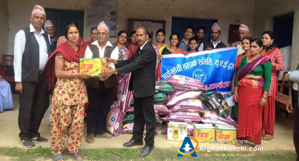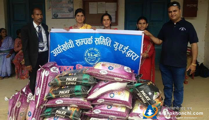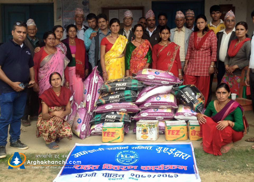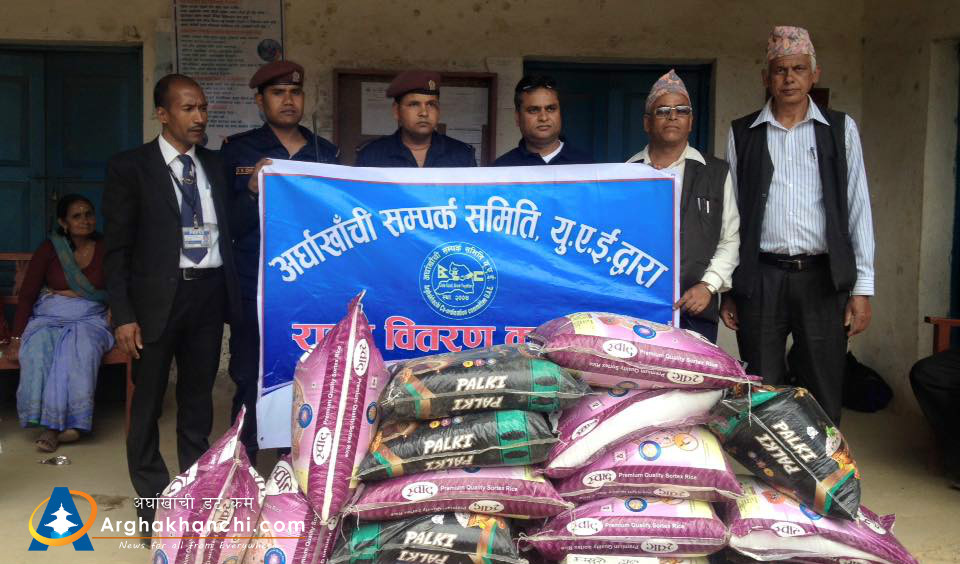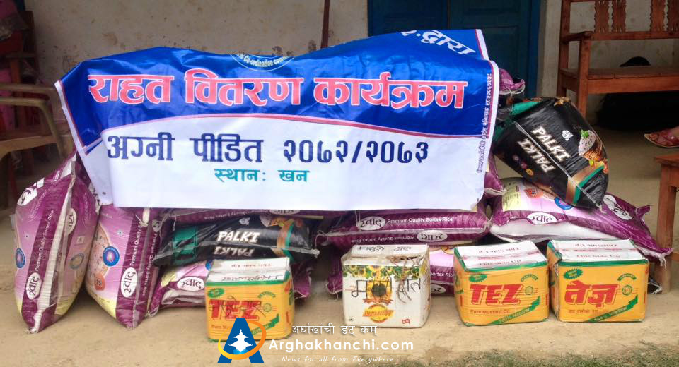 खन गाविस निवासी चित्रकला खनाल र बिष्णु खनालको परिवारलाई राहत स्वरुप खाद्यन्न बितरण गरेको हो । अग्नि पिडितलाई राहत बितरणको दोस्रो चरण अन्तर्गत खन गाविसका दुई घर अग्नि पिडितलाई समितिले दुई दुई कुईन्टल चामल,एक एक पेक तेल र दाल हस्तान्तरण गरेको हो । अर्घाखाँची संपर्क समिती यु ए ई का केन्द्रीय सचिव घनश्याम ज्ञवाली, कोषाध्यक्ष बिष्णु खनाल, केन्द्रीय सदस्य कमल खनाल नारायण पोख्रेल, दुबइ क्षेत्रीय समिती अध्यक्ष जे पि पोख्रेलको व्यावस्थापनमा रास अल खिमा समितीका सल्लाहकार मुमलाल पाण्डेको उपस्थितीमा पीडितहरुलाई हस्तान्तरण गरिएको थियो।