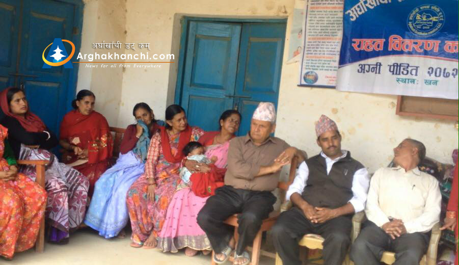 खन, अर्घाखाँची । अर्घाखाँचीका बिभिन्न स्थानमा शुरु गरेको अग्नी पीडित राहत बितरण कार्यक्रमको पहिलो चरणको दोस्रो राहत हस्तान्तरण कार्यक्रम आज खन गाबिस भवनमा सम्पन्न भएको छ।अर्घाखाँची सम्पर्क समिति यु.ए.ई.ले सोमवार खनमा अग्नि पिडितलाई राहत बितरण गरेको छ ।