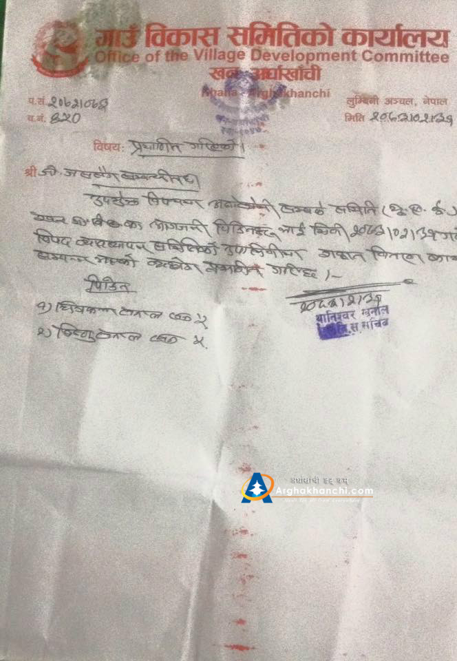 अर्घाखाँची सम्पर्क समिति यु.ए.इ रसअल खेमा शाखाका क्षेत्रीय सलाहकार मुमलाल पाण्डेले खन गाविसमा भएको कार्यक्रममा बिपतका वेला सानो सहयोग पनि पिडितका लागि ठुलो राहत हुने महसूस गर्दै युएईवाट सहयोग संकलन गरी राहत दिने योजना वनाईएको वताउनु भयों । कार्यक्रममा कालिका नेपाल राष्ट्रीय उच्च माबिका प्राचार्य भुवन खनालले यसरी सहयोग योजना लिएर संस्थाले ठुलो योगदान दिएको वताउदै खुलेर सराहना गर्नु भयों । गावीस स्तरीय विपत व्यावस्थापन समितीको तर्फबाट सदस्यहरु ऋषिराम पोख्रेल, प्रकाश खनाल, सुन्तला बिक, गंगाराम खनाल लगायतले मन्तब्य राख्दै अर्घाखाँची सम्पर्क समिति यु.ए.ई ले सञ्चालन गरेको अभियानले पिडितको घाउमा मलम लगाउन सघाऊ पुगेको धारणा व्याक्त गरेका थिए । स्थानीय शान्ति समितिका खनका संयोजक भविश्वर पोख्रेलले विदेशमा पसिना वगाएर पनी अर्घाखाँचीवाँसीले यसरी जिल्लाको लागी योगदान पुर्याउदा खुसी व्याक्त गर्दै आगामी दिनमा संस्था अझ सक्रिय होस भन्ने कामना गर्नु भयों ।