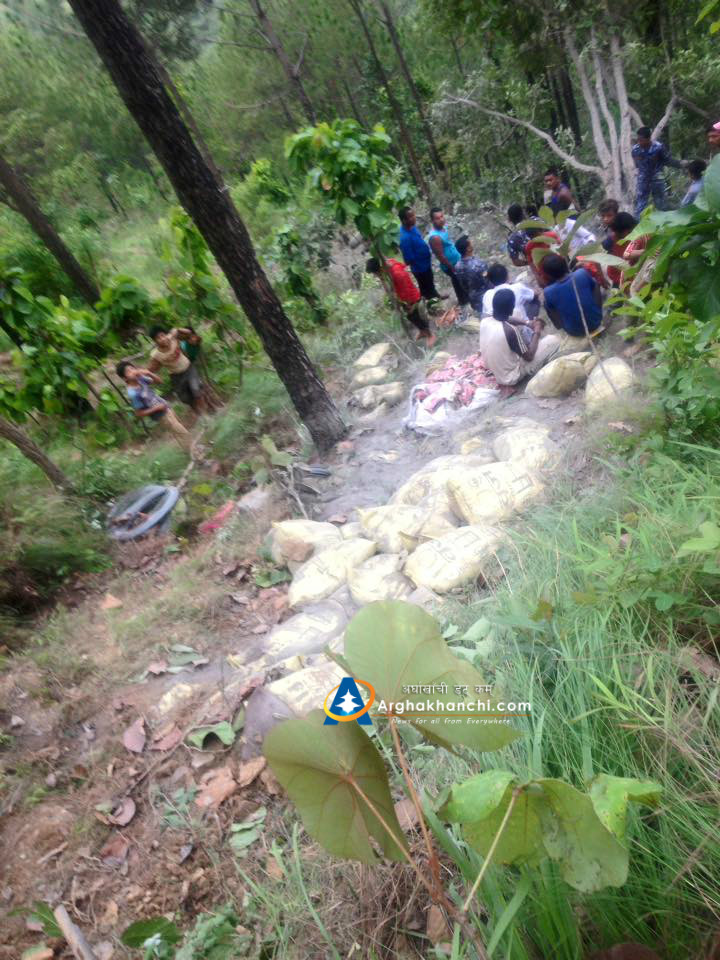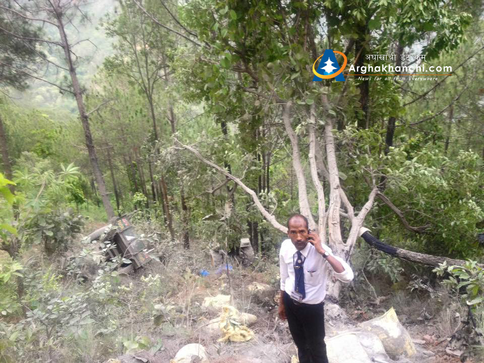सन्धिखर्क देखी असुरकोट चौताराको लागी सीमेन्ट ४० क्विंटल सीमेन्ट र छड लिएर छुटेको ट्याकटर दुर्घटनामा परेको छ । दुर्घटनामा कुनै मानवीय क्षेती भने भएको छैन गाड़ी सड़कदेखी ५० मी तल खसेको छ ।