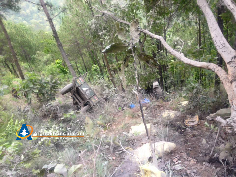 असुरकोट, अर्घाखाँची । अर्घाखाँची जिल्लाको असुरकोट गावीस ३ स्थित चौतारीमा लु २ त ६३१४ नंवरको ट्याक्टर आज साँझ ६ वजे दुर्घटना भएको छ ।