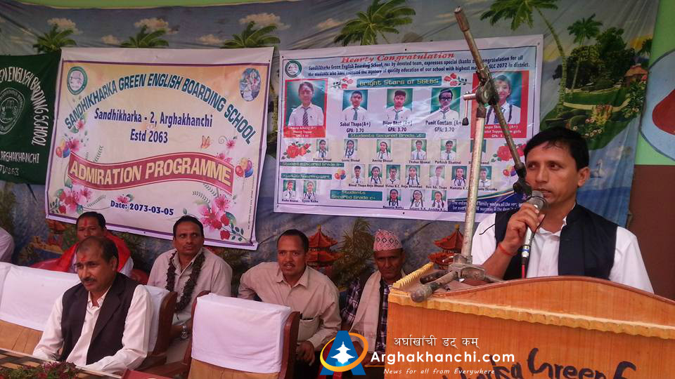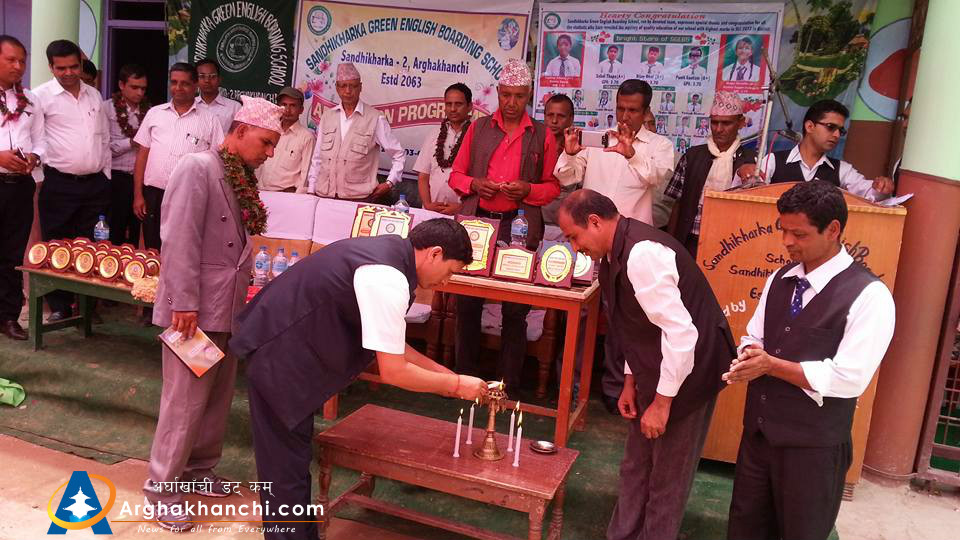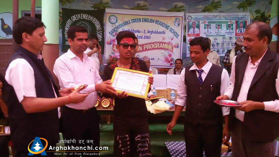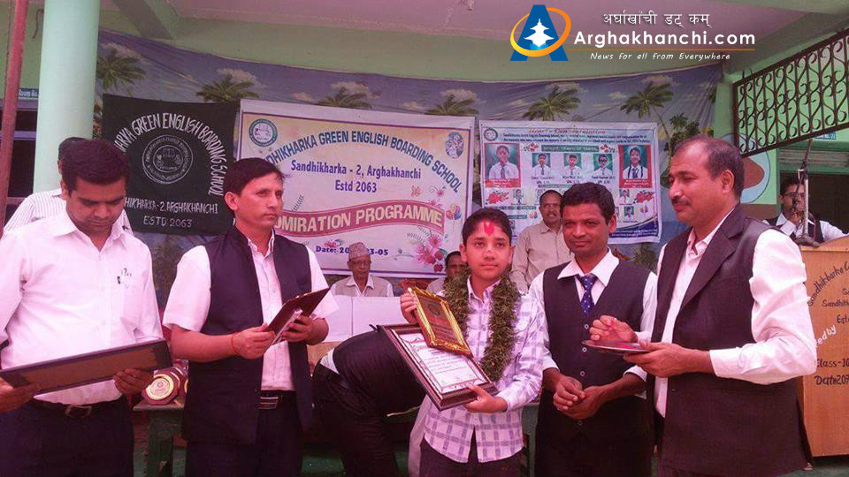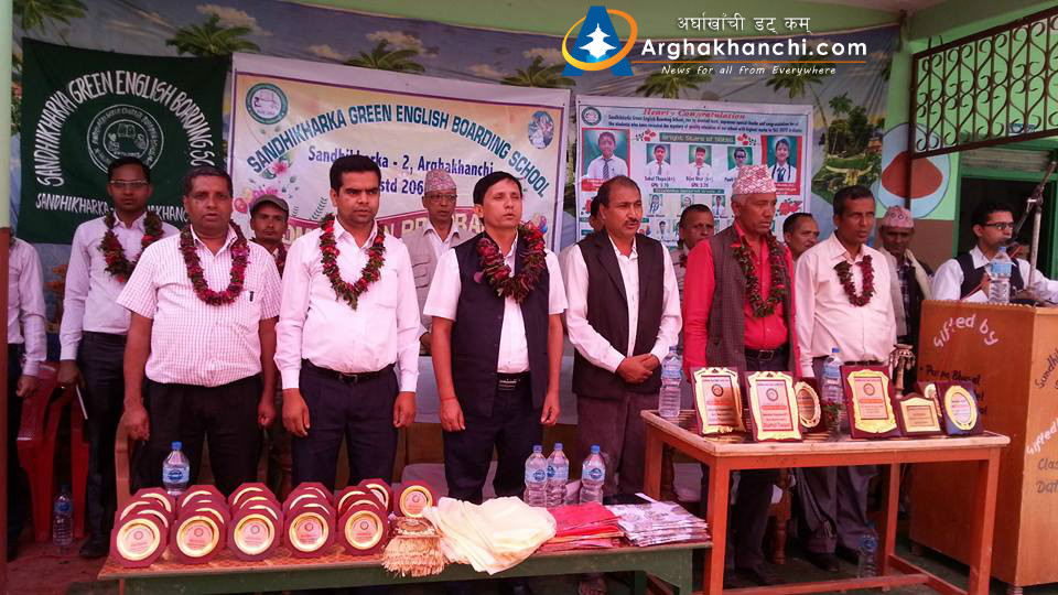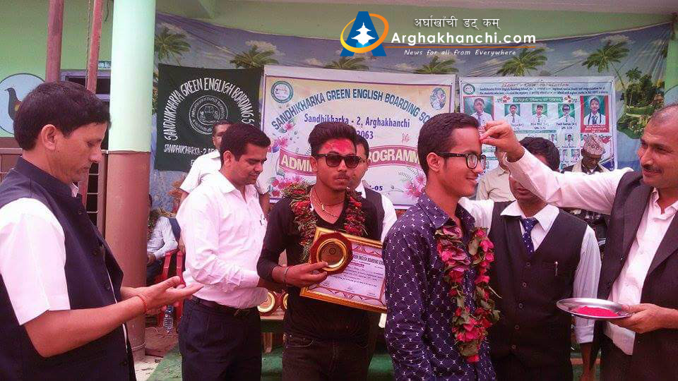 चुत्राबेशी, अर्घाखाँची, असार ५ ।  अर्घाखाँची जिल्ला सन्धिखर्क नगरपालीका वडा नंं. २ चुत्राबेशीमा सन्धिखर्क ग्रिन इङलिस बोर्डिङ्ग स्कुलले २०७२ सालमा एस.एल.सी  परिक्षामा सहभागी भई जिल्ला प्रथम भएको खुसियालीमा आज विद्याथीहरुलाई सम्मान तथा अभिनन्दन कार्यक्रम सम्पन्न भएको छ ।