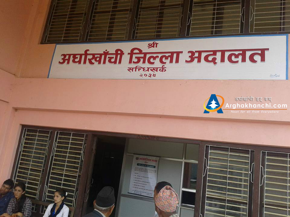 टुडिखेल-सन्धिखर्क, अर्घाखाँची ( अर्घाखाँचीडट्कम )। जिल्ला अदालत अर्घाखाँचीले नयाँ भबनमा सरेर अाफ्नो काम कार्वाही सुरु भएको छ । अदालतको पुरानो भबन भत्काई नयाँ भबन बन्न थालेपछि जिल्ला बिकास समिति अर्घाखाँचीको सभाहल भाडामा लिई सरिएको हो ।