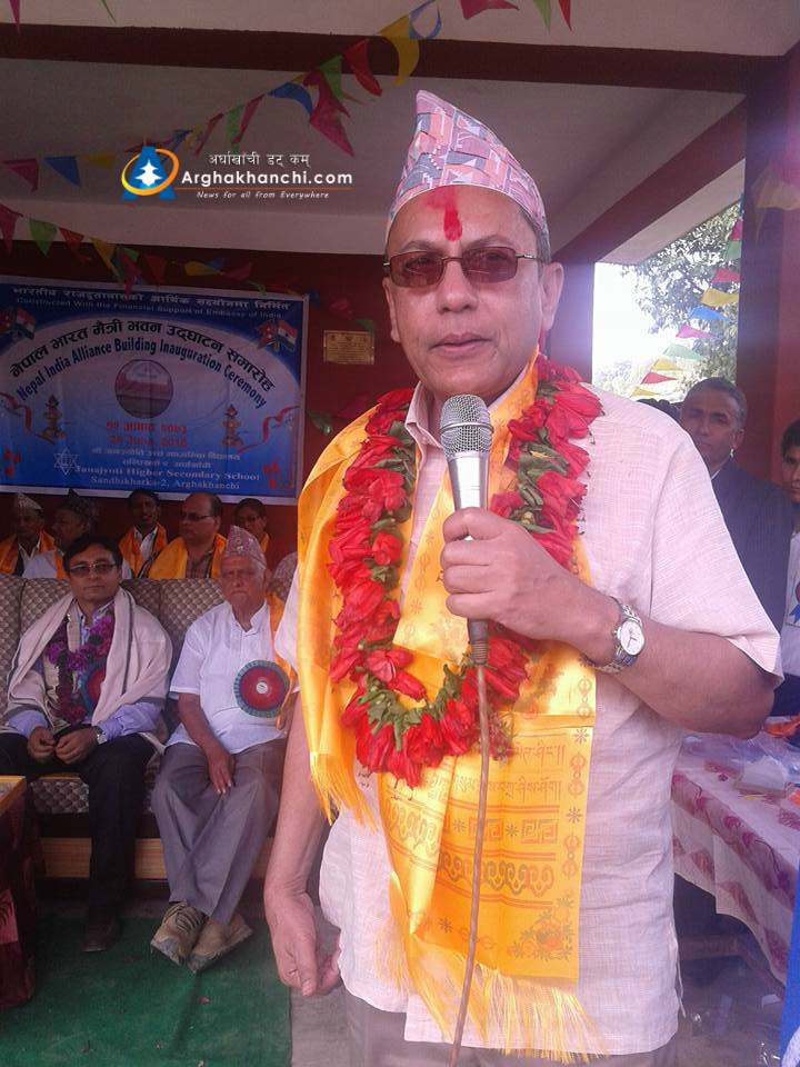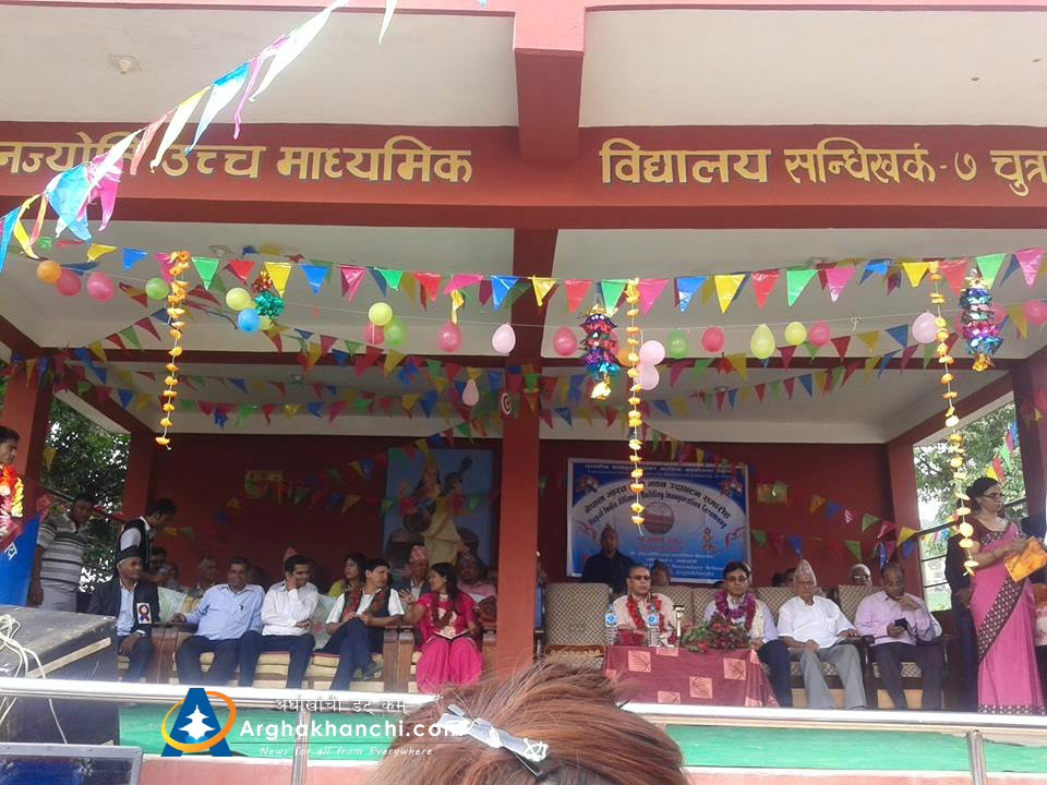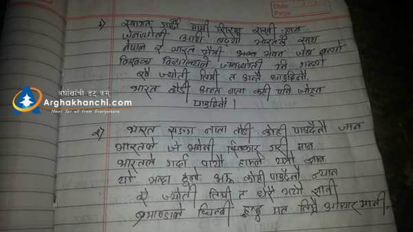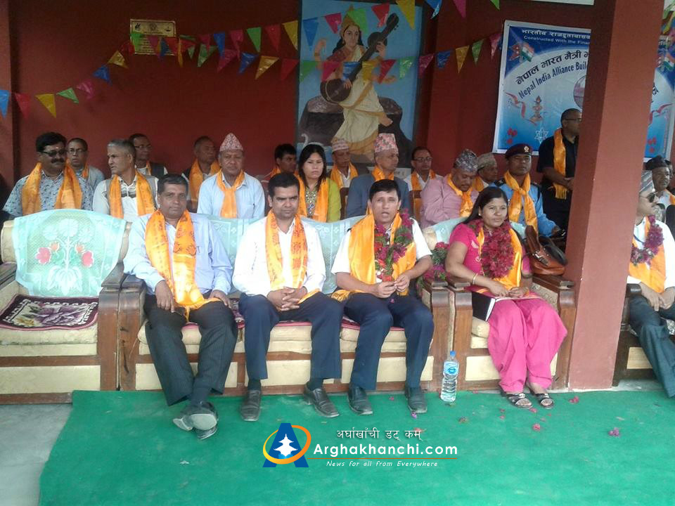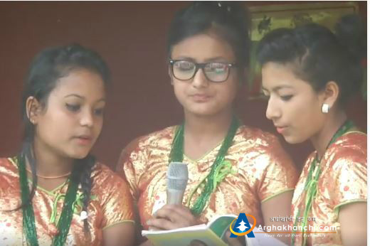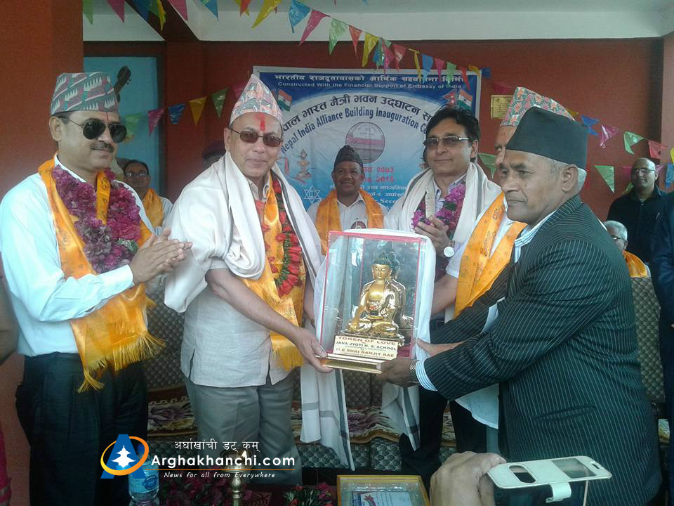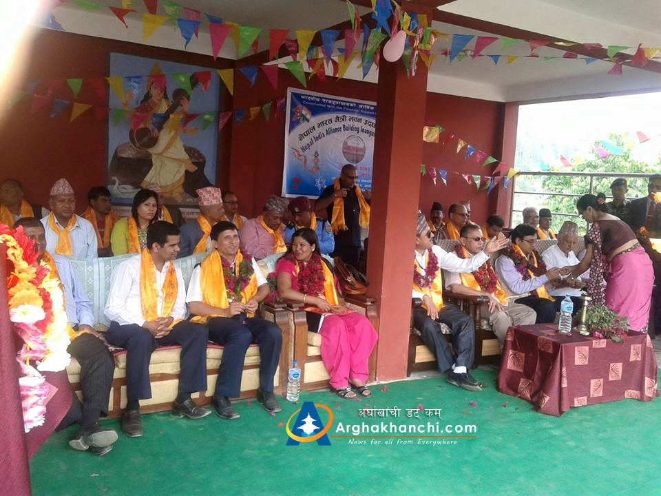 अर्घाखाँचीको सन्धिखर्क- २ स्थित जनज्योति उमावीका विद्यार्थीले ‘भारतले जे भनेनी स्विकार गरि मान’ भन्दै स्वागत गीत गाएका हुन् । भारतीय राजदूतावासको १ करोड ५१ लाख रुपैयाँ अनुदान पछि बनेको विद्यालय भवनको आईतबार भएको उद्घाटन समारोहमा उपप्रधान तथा उर्जामन्त्री टोपबहादुर रायमाझी, भारतीय राजदूत रणजीत राय पुगेका थिए ।