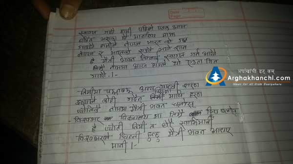 सन्धिखर्क, अर्घाखाँची ( अर्घाखाँचीडट्कम ) । उपप्रधान तथा उर्जा मन्त्री टोपबहादुुर रायमाझी प्रमुख अतिथी बनेर पुगेको कार्यक्रममा आयोजकले ‘भारतले जे भने पनि नेपालले मान्नुपर्ने’ भन्दै स्वागत गीत गाएपछि व्यापक आपत्ती – आलोचना भएको छ । देशको स्वाभिमानमा आँच आएको भन्दै यसको फेसबूक लगायत सामाजिक सन्जालमा चर्को आलोचना भएको छ ।