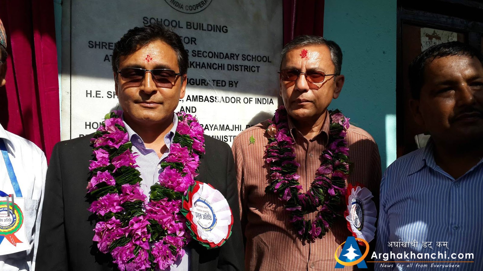 3. On the same day, Ambassador of India ShriRanjit Rae and Deputy Prime Minister and Minister for Energy, Government of Nepal, Shri Top Bahadur Raymanjhi jointly inaugurated another newly constructed building ofShree ArghaRajasthal Secondary School, Argha VDC in Arghakhanchidistrict. The triple storied building of the school, which has been constructed with Government of India’s financial grant of NRs.44.20millions, has 8 class rooms, library,separate rest rooms for boys and girls, compound walls, as well as school furniture and equipments.