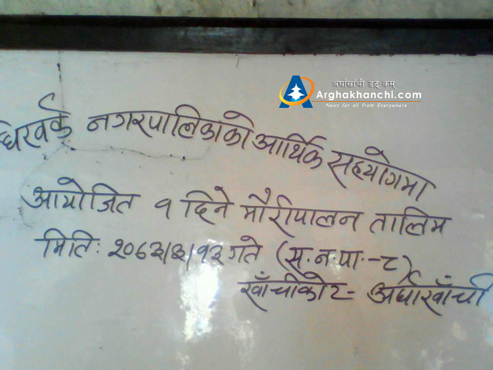 सन्धिखर्क, अर्घाखाँची ( अर्घाखाँचीडट्कम ) । अर्घाखाँची जिल्लाको सन्धिखर्क नगरपालिका – ८ स्थित खाचिकोटमा माहुरी पालन सम्बन्धित तालिम सम्पन्न भएको छ ।
