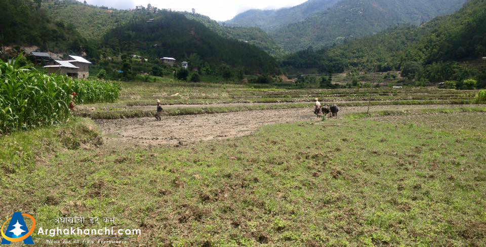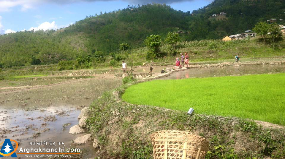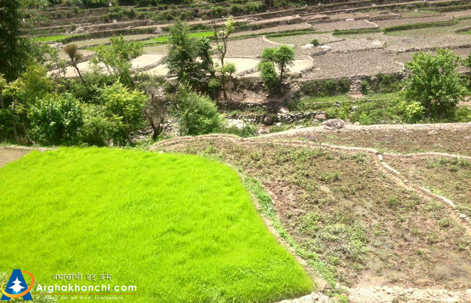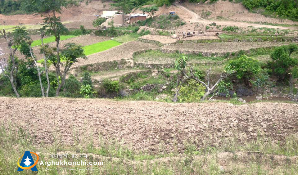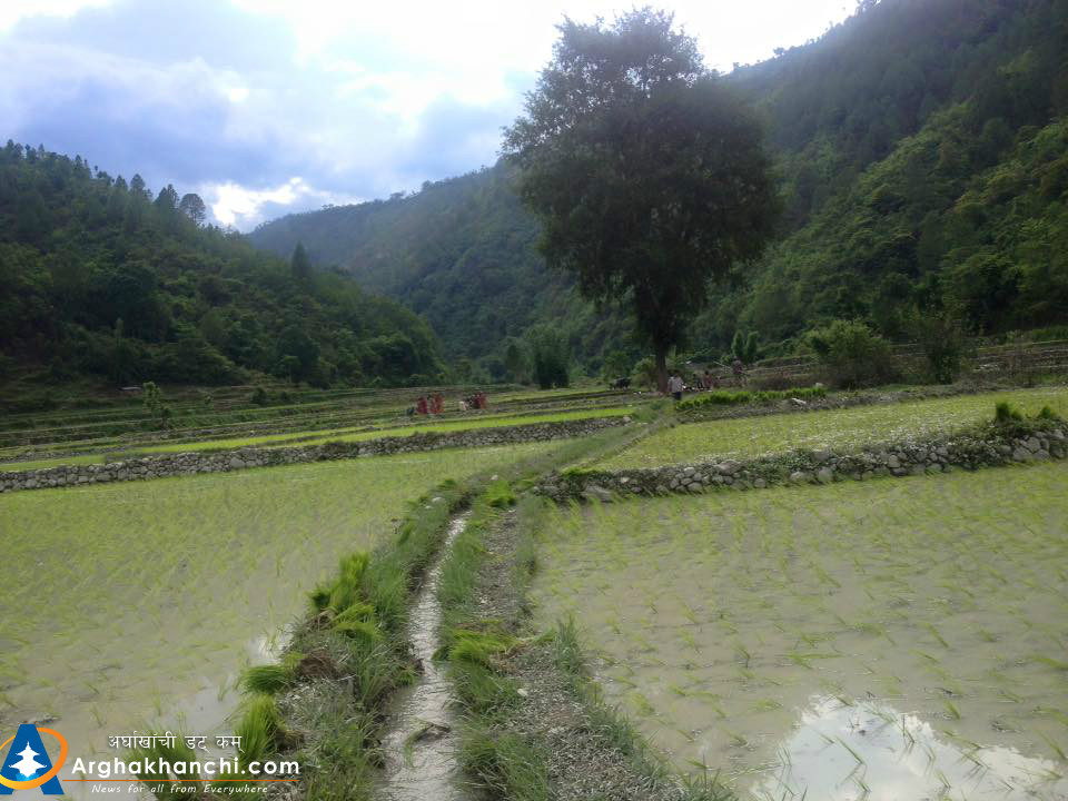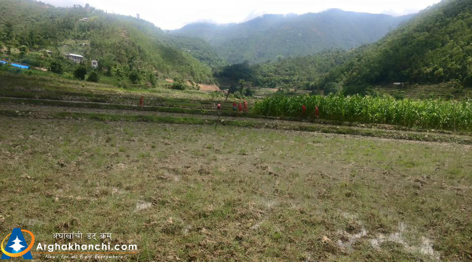 दुर्गाफाँट, अर्घाखाँची । यस पटक असार १५ गते सम्म अर्घाखाँची जिल्लाको दुर्गाखोलामा पानीको अभावमा धेरै खेत रोप्न वाँकी रहेका छन् ।
