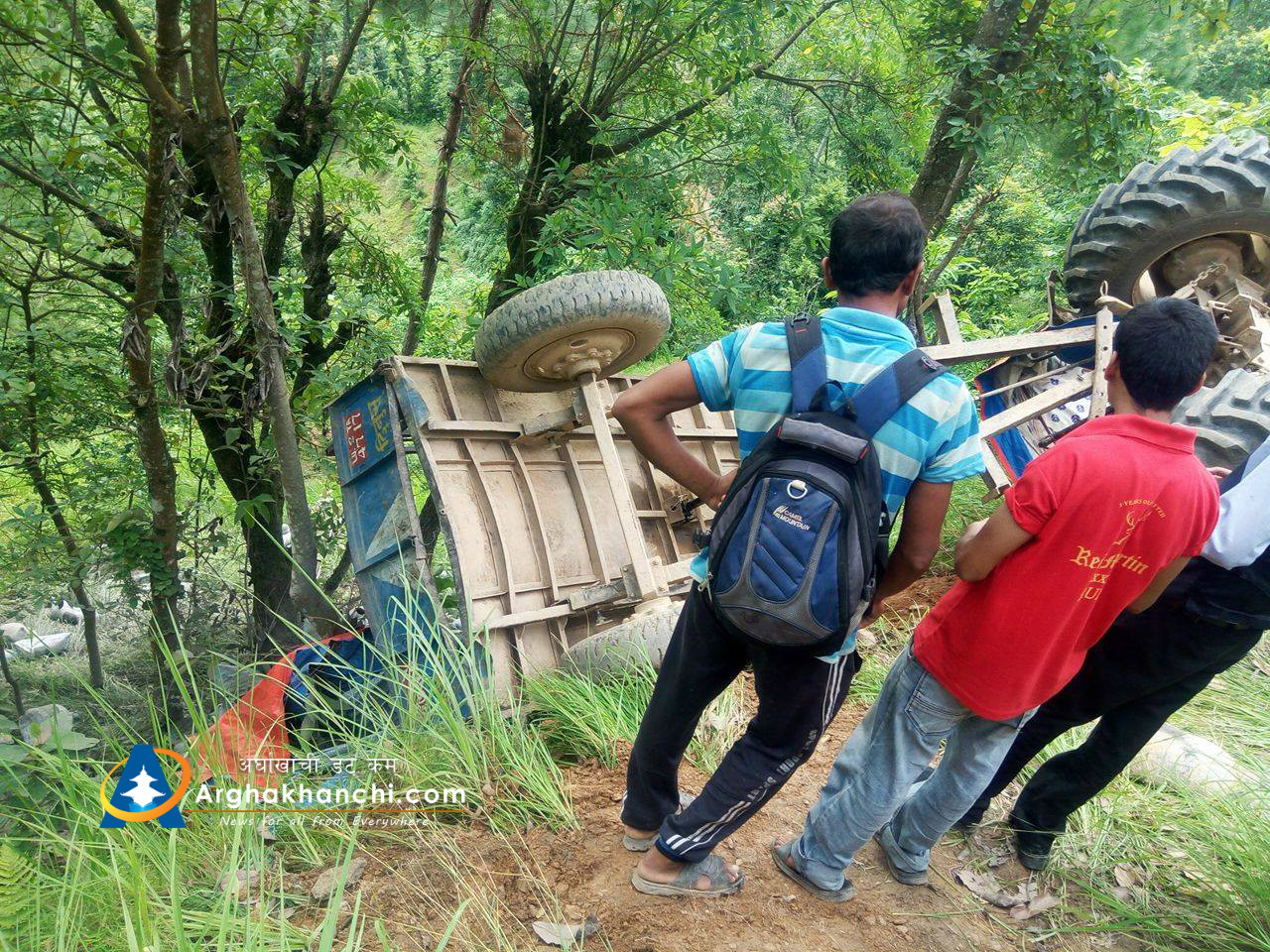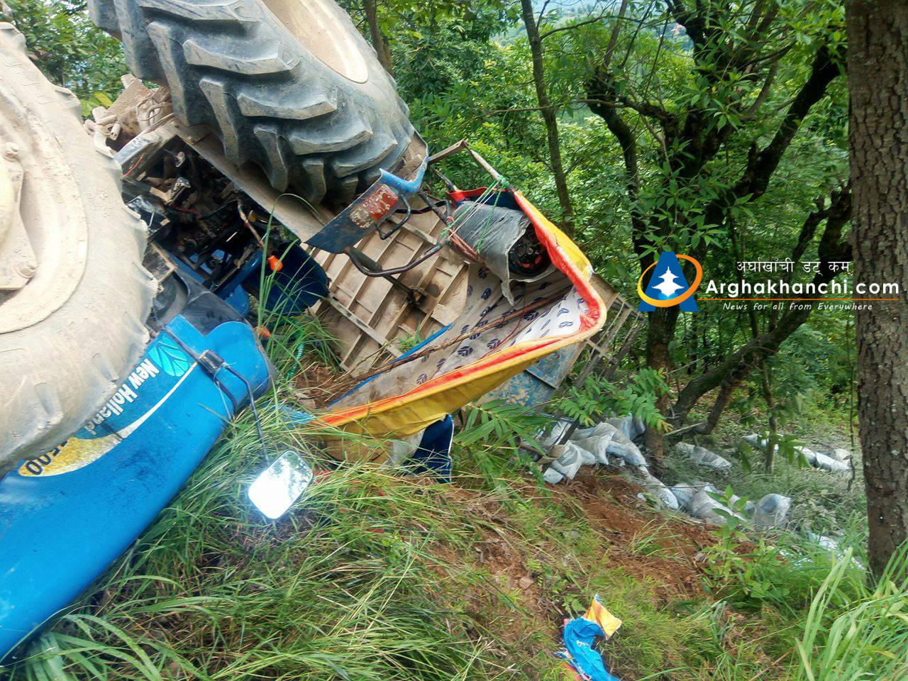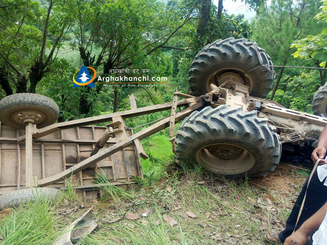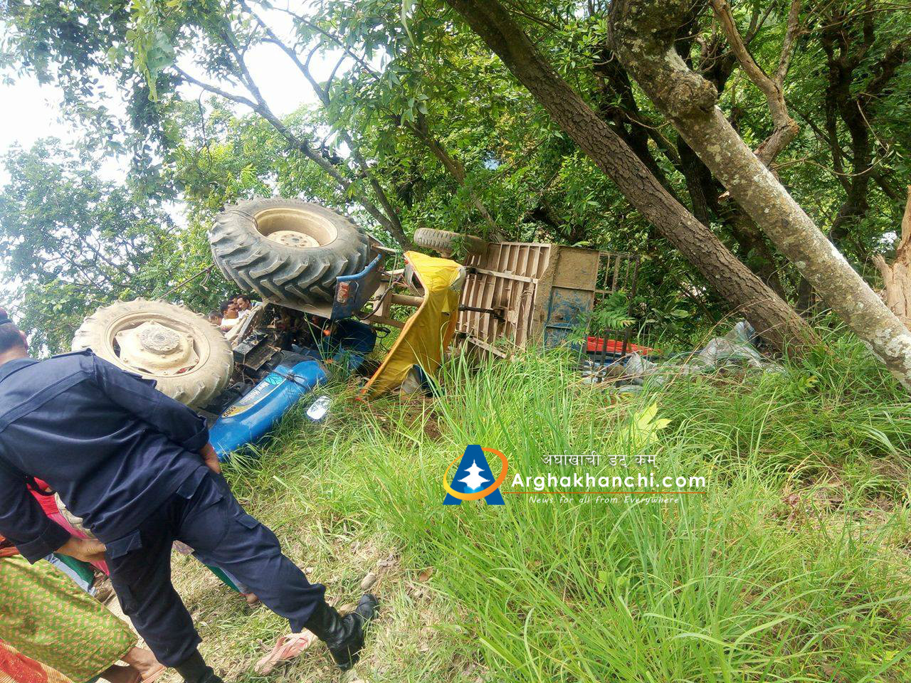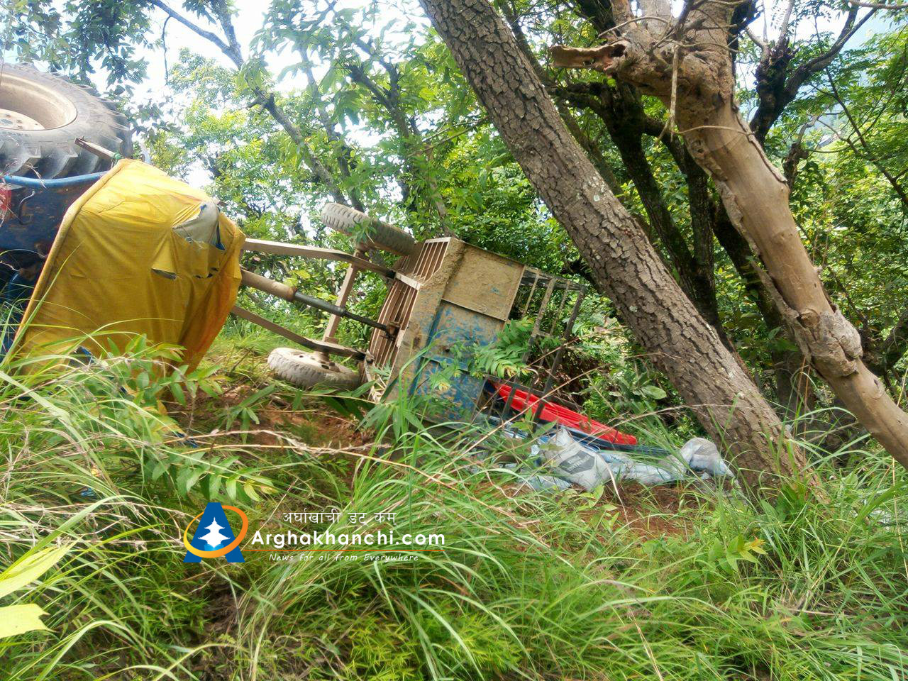 चालक पारस नेपालीले चलाएको ट्याक्टर दुर्घट्नामा परि सह-चालक कमल सुनार सामान्य घाइते भएका छन् , उनलाई उपचारका लागि जिल्ला अस्पताल सन्धिखर्क लगिएको छ । दुर्घट्नामा कुनै पनि मानविय क्षेती भएको छैन ।