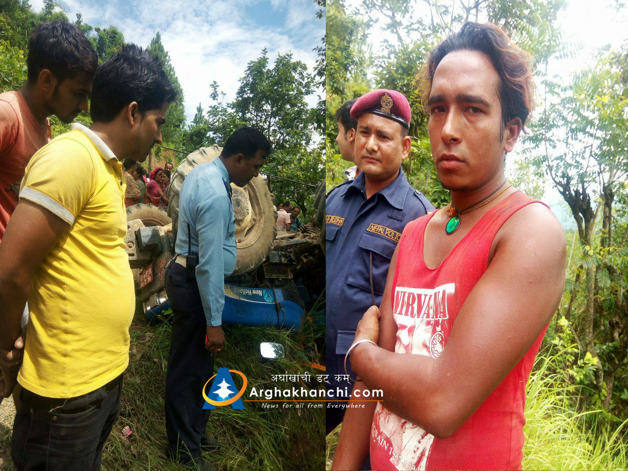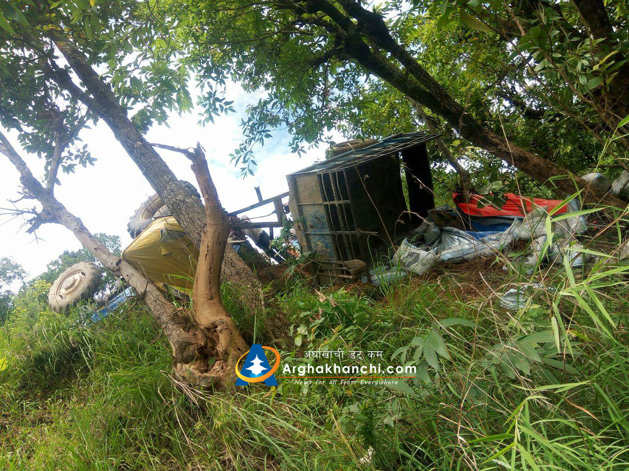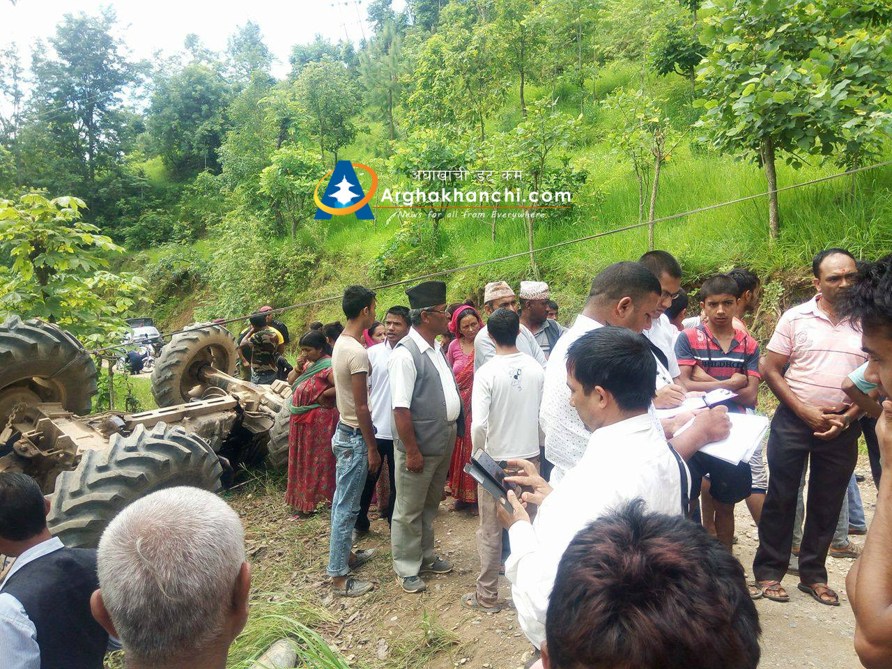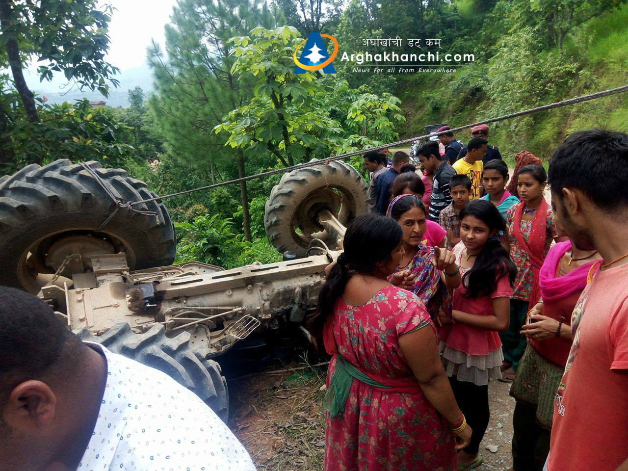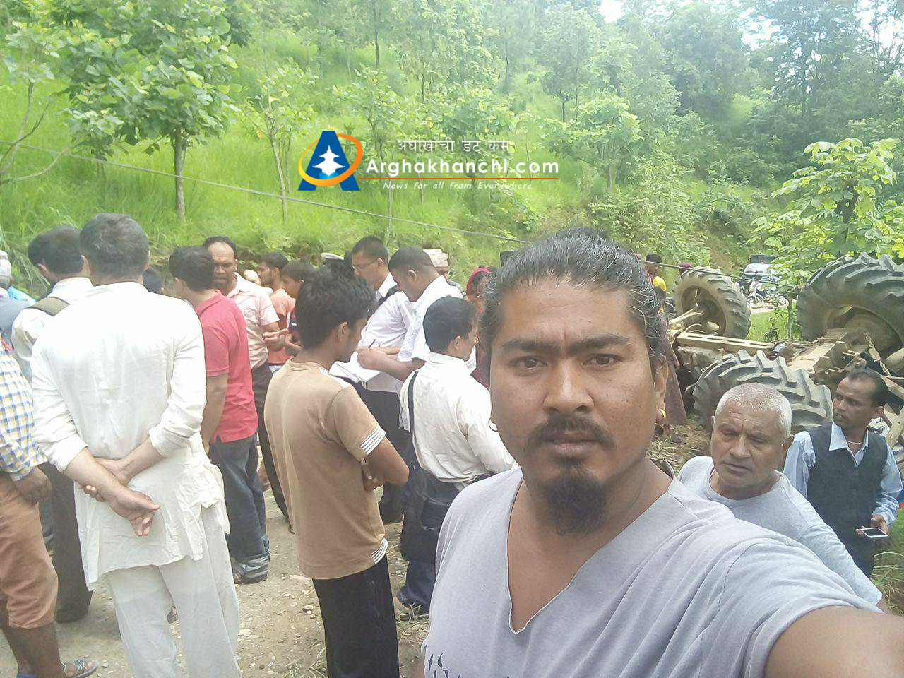 चालक पारस नेपालीले चलाएको ट्याक्टर दुर्घट्नामा परि सह-चालक कमल सुनार सामान्य घाइते भएका छन् , उनलाई उपचारका लागि जिल्ला अस्पताल सन्धिखर्क लगिएको छ । दुर्घट्नामा कुनै पनि मानविय क्षेती भएको छैन ।