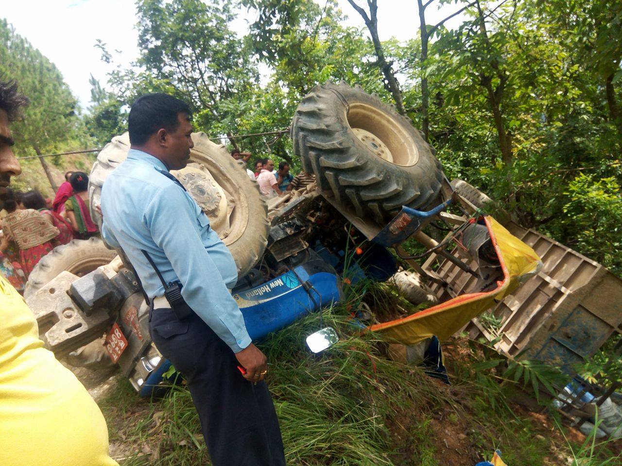 ट्याक्टरले विपरित दिशाबाट आउँदै गरेको जिपलाई साइड दिने क्रममा लोड थाम्न नसक्दा सडक मुनी पल्टिएको बताइएको छ । यस सम्बन्धी प्रहरीले आवश्यक अनुसन्धान गरिरहेको बताएको छ ।