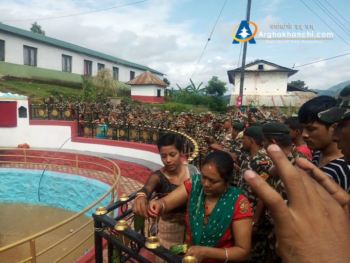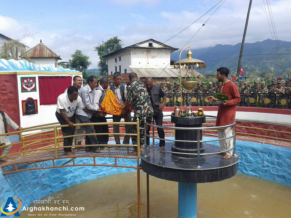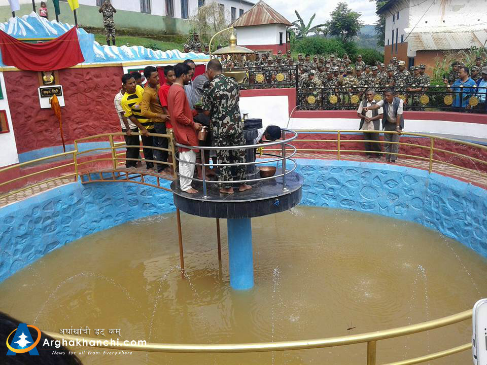सन्धिखर्क नगरपालिका र स्थानीय बासिन्दाको अार्थिक सहयोगमा नेपाली सेनाले निर्माण गरेको म्यालपोखरीको सम्पन्न भएको हो ।