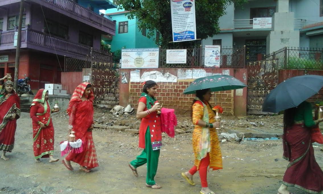 त्यस मन्दिरमा  रहेको धधारोमा बिभिन्न तीर्थहरुको  जल रहेको हुनाले त्यसबाट जल लगि बोल बम भन्दै बजारका बिभिन्न भाग परिक्रमा गरि सिद्धेश्वर सिबालय मन्दिरमा रहेको स्फटिकको शिबलिंगमा अर्पण गरिएको मन्दिरका पुजारी भेसराज चुदालीले बताए ।