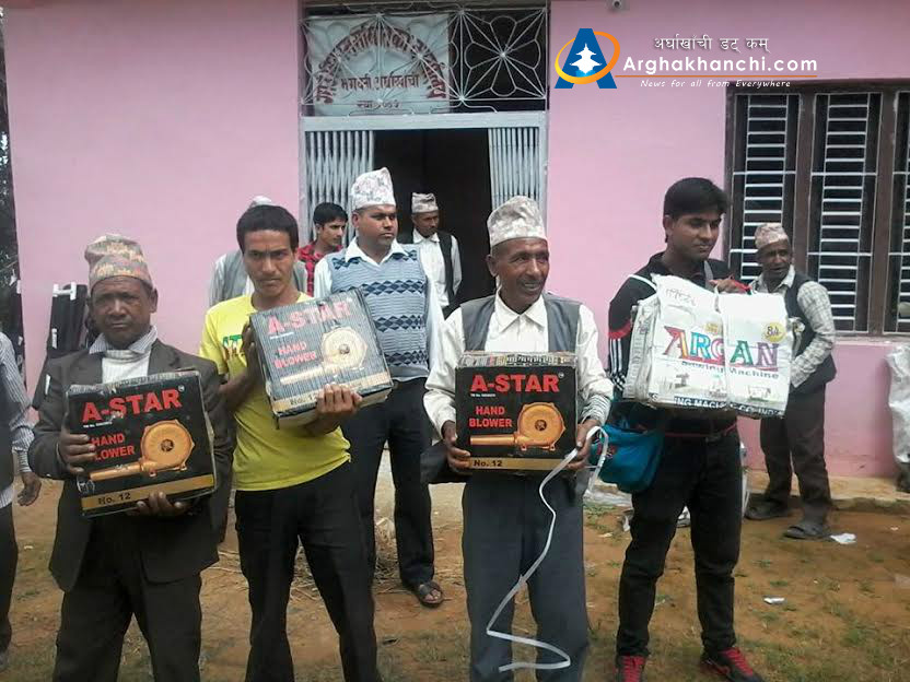 भगवती, अर्घाखाँची । अर्घाखाँची जिल्लाको भगवती ४ मा रहेको संघर्शील युवा क्लबले भगवती गाबिस का नौ वटै वार्डलाई बिरामी  बोक्ने इस्टेचर र सोहि गाबिसका दलित हरुका  लागि आरानमा प्रयोग गरिने पंखा गाबिसको एक कार्यक्रम बीच वितरण गरेको छ ।
