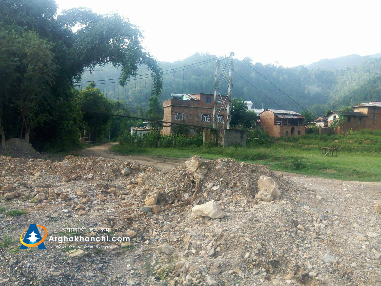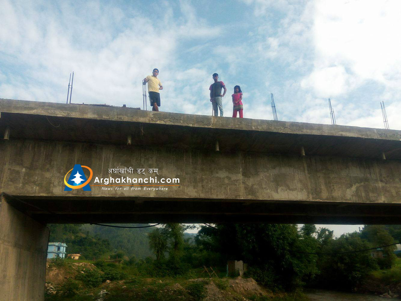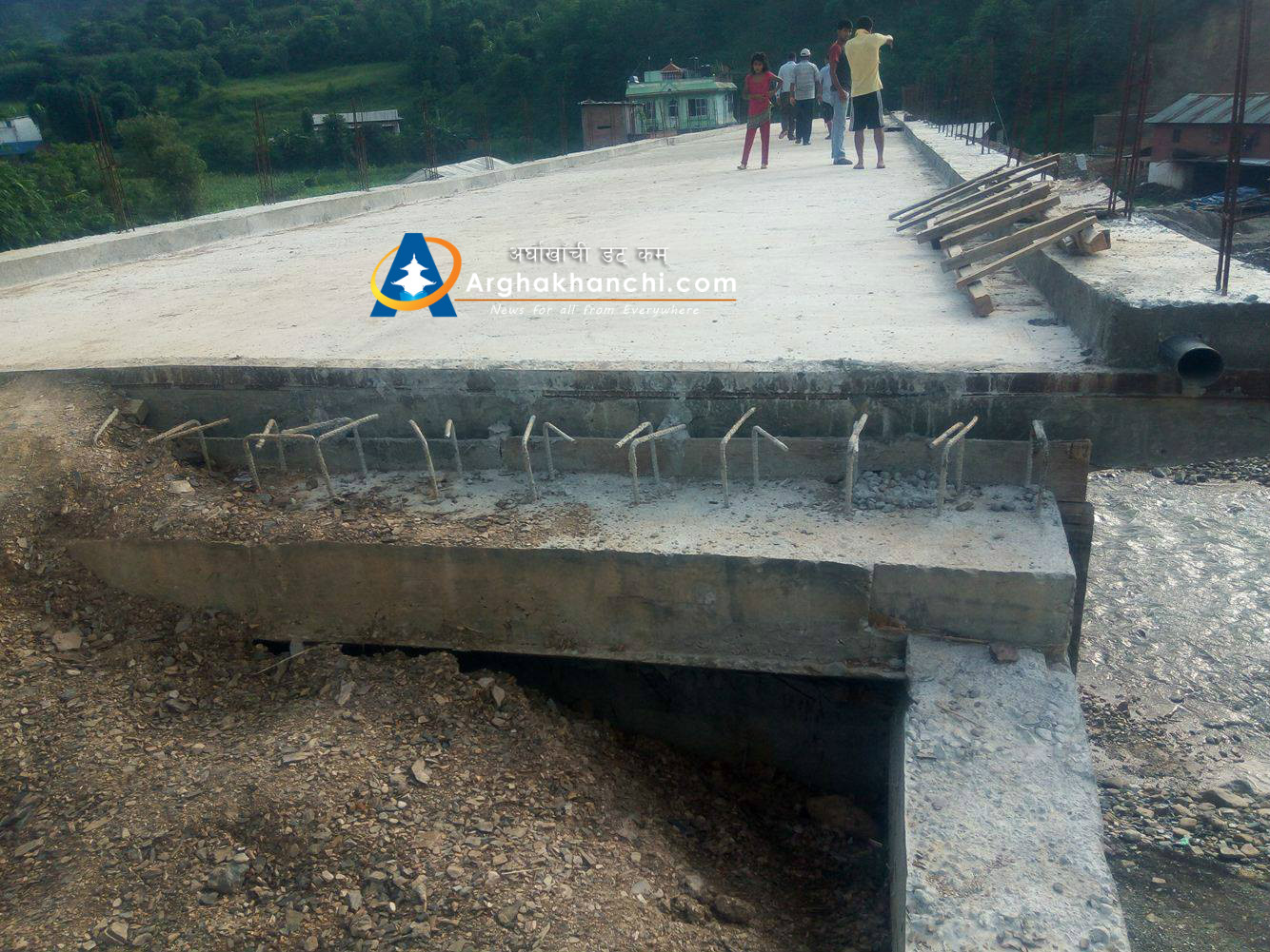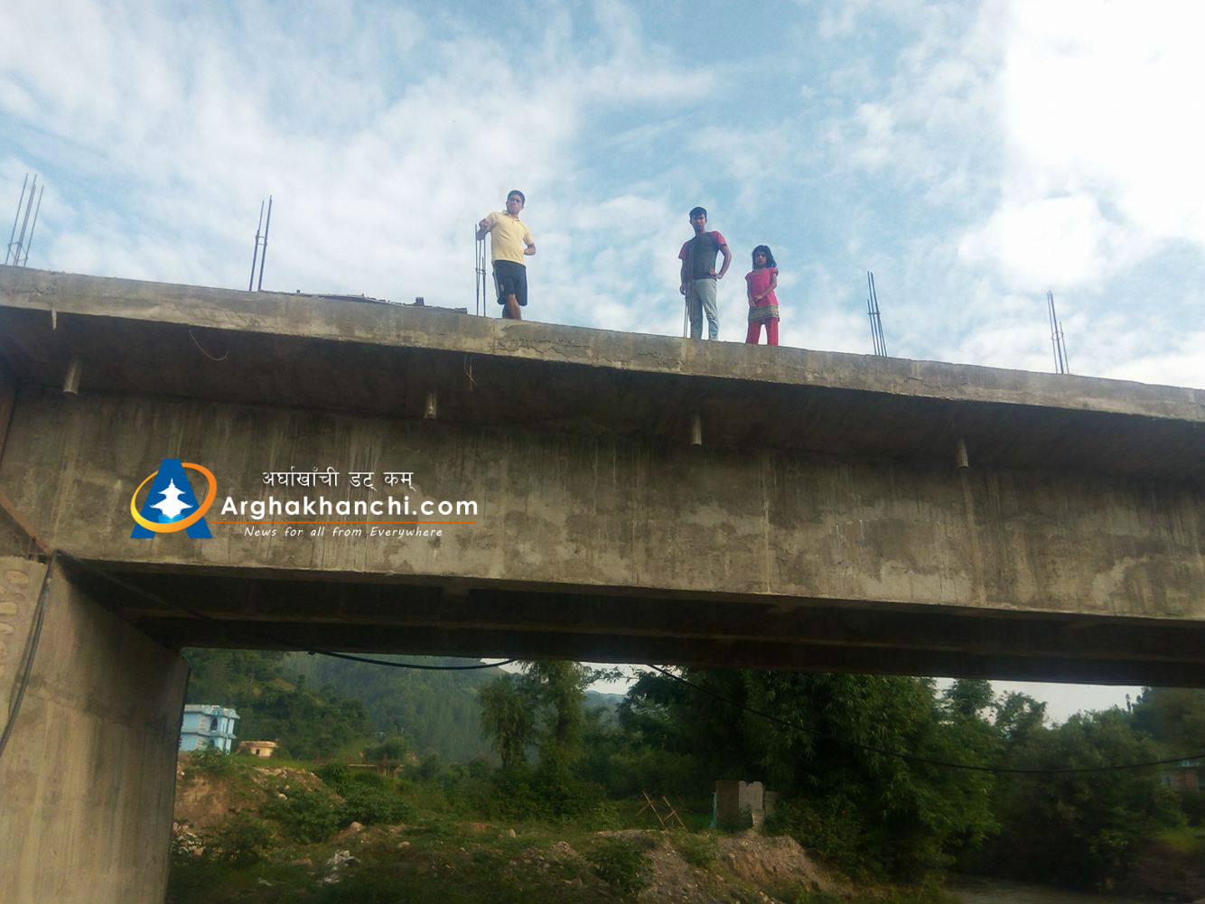यस पुल पहिला गच्छे – भालुवाङ भनी २४ मिटरको राखेकोमा पछि ४९ मिटर पोल र ५५ मिटर पुल लम्बाई बनाइएको छ । स्थानियका अनुसार पहिला सर्वे भएको ठाउँमा पुल नबनाई सोझा, बोल्न नसक्ने किसानहरुका खेतबाट पुल निर्माण गरिएको छ ।  यस पुलका ठेक्दार नारायण प्रसाद बन्जाडे हुन् ।