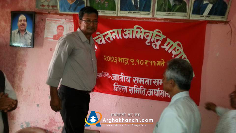 राष्ट्रिय जनमोर्चा निकट जातीय समता समाज जिल्ला समिति अर्घाखाँचीले सन्धिखर्कमा आयोजना गरेको दलित चेतना अभिबृद्वि प्रशिक्षण कार्यक्रममा बोल्ने बक्ताहरुले यस्तो धारणा ब्यक्त गरेका थिए ।