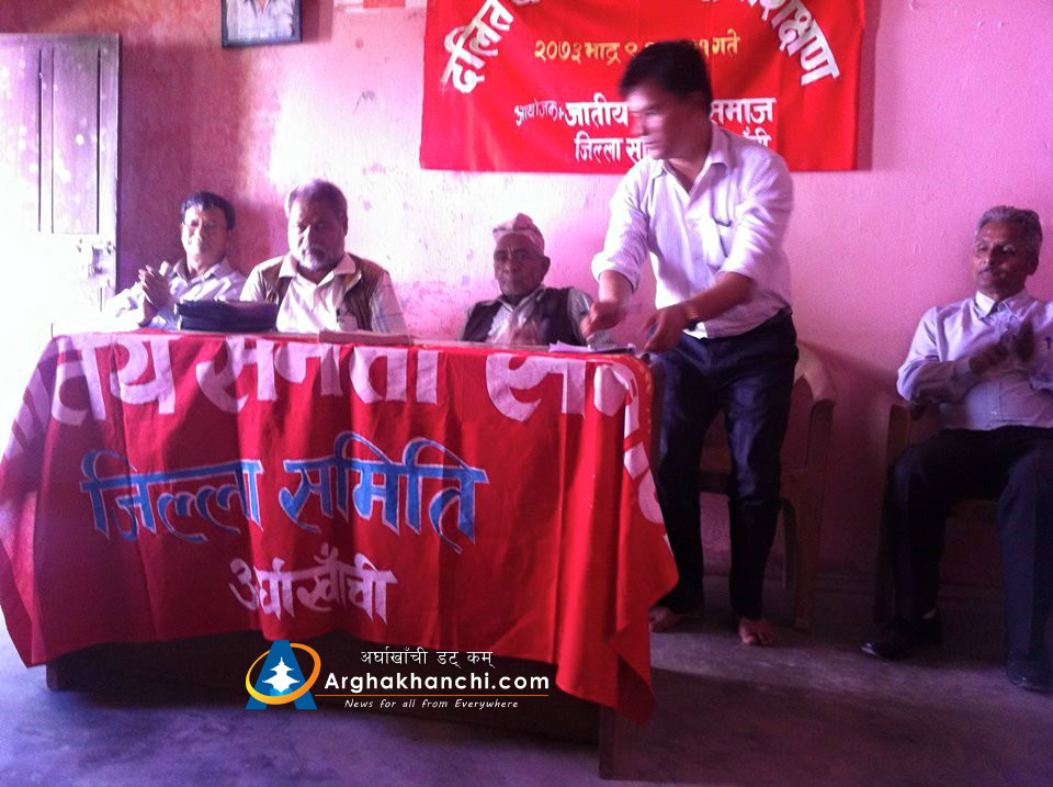 सन्धिखर्क, अर्घाखाँची । जातिय समता समाज जिल्ला समिति अर्घाखाँचीको आयोजनामा दलित चेतना अभिबृद्वि सम्बन्धि तिन दिने प्रशिक्षण कार्यक्रम सन्धिखर्कमा सम्पन्न भएको छ ।