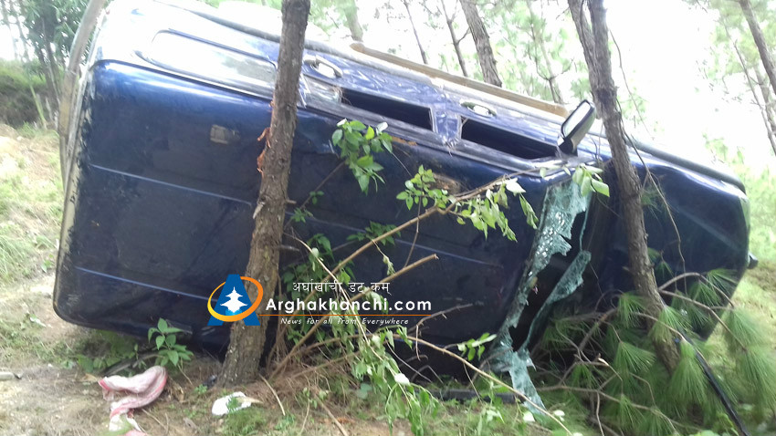 गाडी सल्लाको रुखमा अडिएका कारण ठूलो क्षति नभएको हो। जिल्ला प्रहरी कार्यालयका प्रमुख डिएसपी नवरत्न पौडेलले दिएको जनकारी अनुसार रामु बस्नेत भन्ने व्यक्तिले गाडी चलाएको बुझिन आएको छ। बस्नेत पश्चिम नेपाल वस व्यवसायी समितिअन्र्तगत सन्धिखर्क गोरुसिङ्गे सडकका रुट इन्चार्जसमेत हुन्। गाडी बावुराम भुसालको नाममा रहेको  पौडेलले बताए।