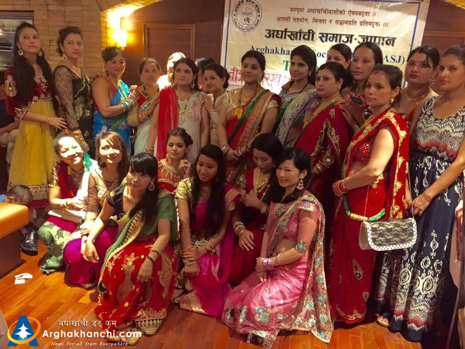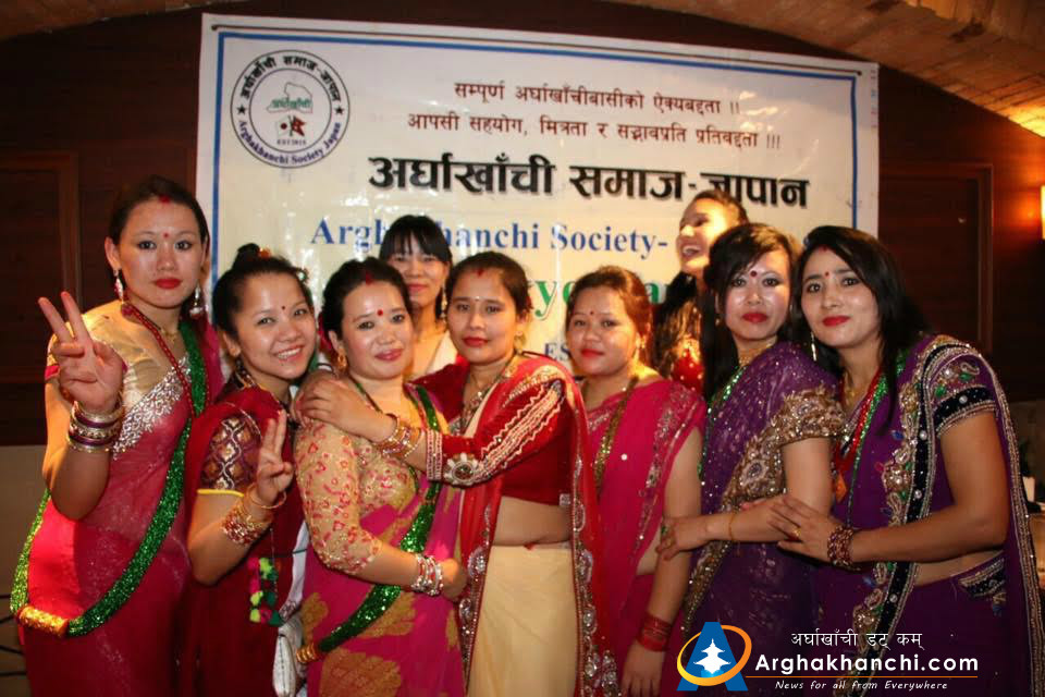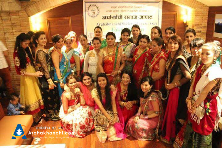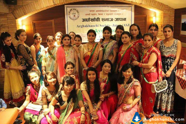 अर्घाखाँची । नेपाली  महिलाहरुको  महान चाड  हरितालिका  तीजको   अबसरमा  जापानमा  रहने अर्घाखाँची बासीहरुको साझा संस्था  अर्घाखाँची  समाज जापानले महिला चेलीबेटिहरुलाई दर खुवाउने  एबम तीज गीत मनोरन्जनात्मक कार्यक्रम सम्पन्न गरेको छ । जापानको टोक्यो र  आसपासका क्षेत्रबाट ब्यापक उपस्थिति रहेको उक्त कार्यक्रममा  महिला तथा सहभागिहरुलाइ बिभिन्न नेपाली परीकार सहित तीजको  शुभकामना आदनप्रदान गरी स्वागत गरिएको थियो ।